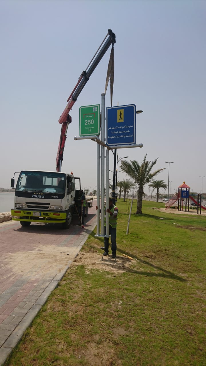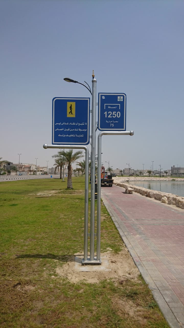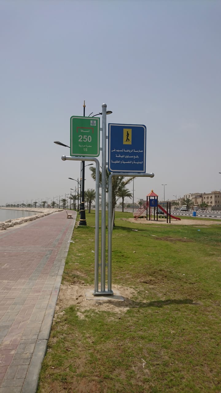شرعت بلدية محافظة القطيف بتركيب لوحات ارشادية للتحفيز على المشي في كورنيش القطيف.
