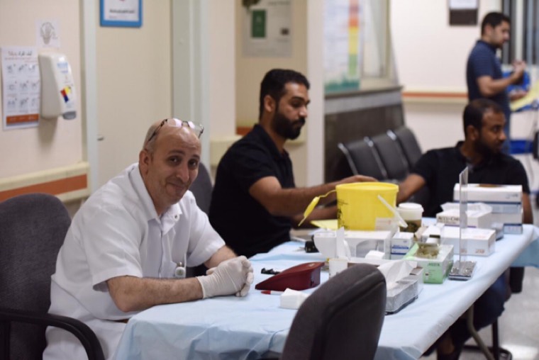 وشارك في الحملة التي تهدف إلى نشر الوعي وحاجة المجتمع للدم 28 من أخصائي وفني المختبرات وطبيبين للتأكد من سلامة ولياقة المتبرعين.