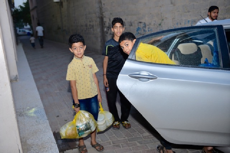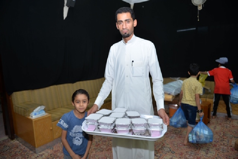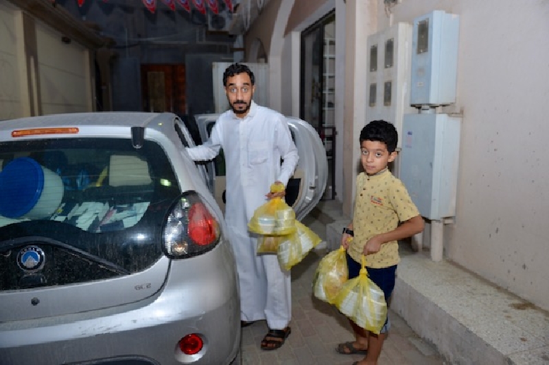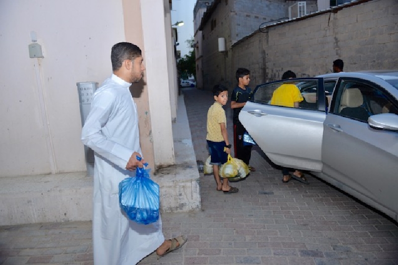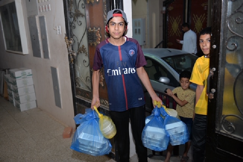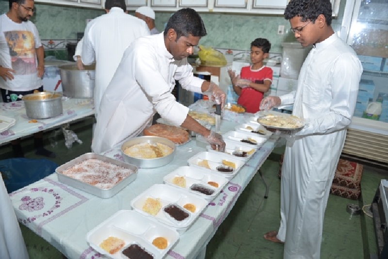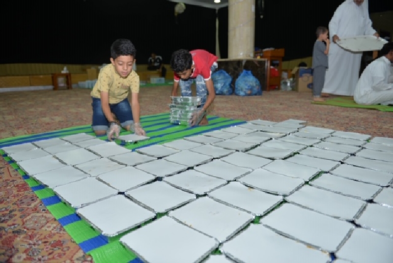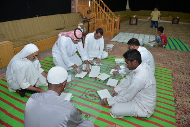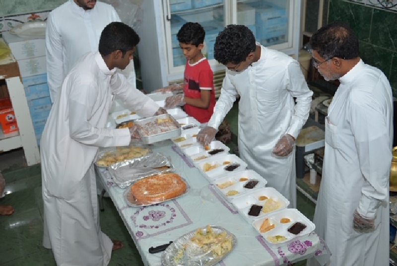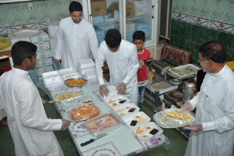 ويكمل الحبابي حديثه: إن مكان التجهيز مقسم لعدة أقسام، وفي كل قسم مجموعة من الشباب لها مهمة محددة تقوم بها، مجموعة تستقبل الأطباق من الأسر وتكتب عليها اسم الأسرة حتى لا تختلط الأطباق ويسهل فرزها وتقوم مجموعة بعد تفريغها بغسلها قبل إرجاعها للأسر المتعاونة، ومجموعة أخرى تضع الأكل في الأطباق، ومجموعة تنقل الأطباق لمجموعة أخرى تغلفه، ومجموعة أخرى تأخذه لوضعه في أكياس، بعد ذلك يأخذ المناديب أطباق الإفطار لإيصالها لمنازل الأسر المتعففة قبيل صلاة المغرب ".