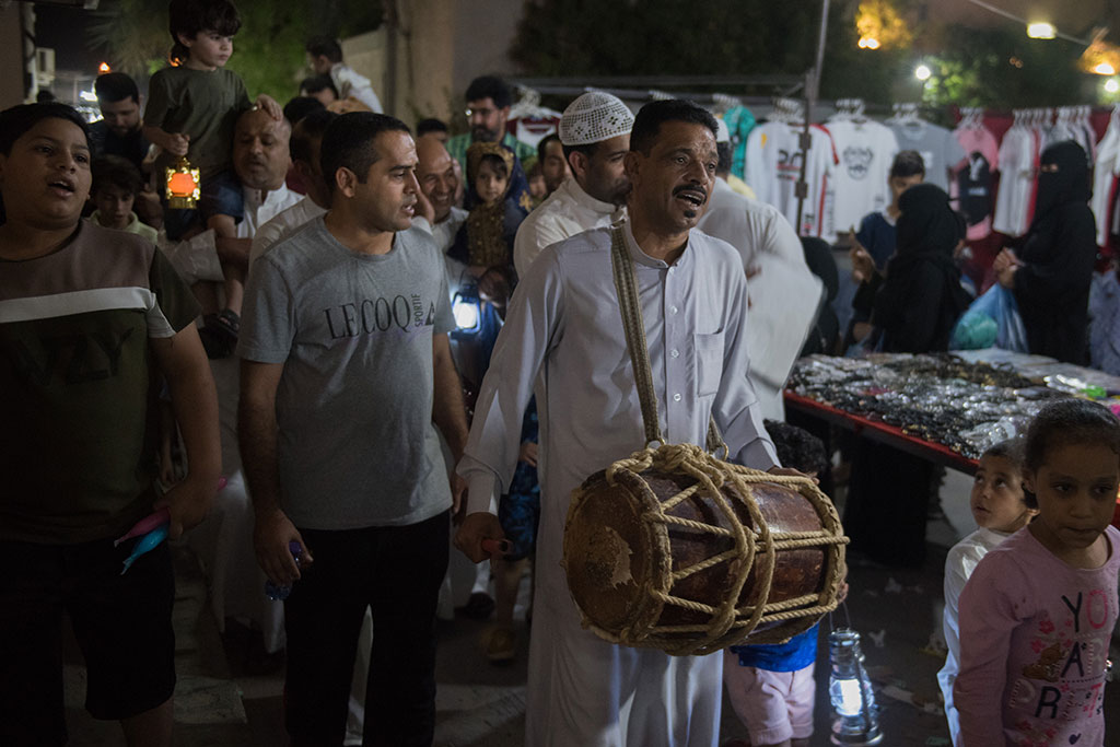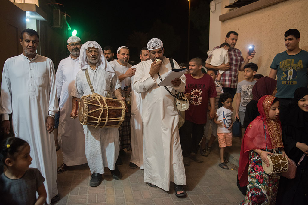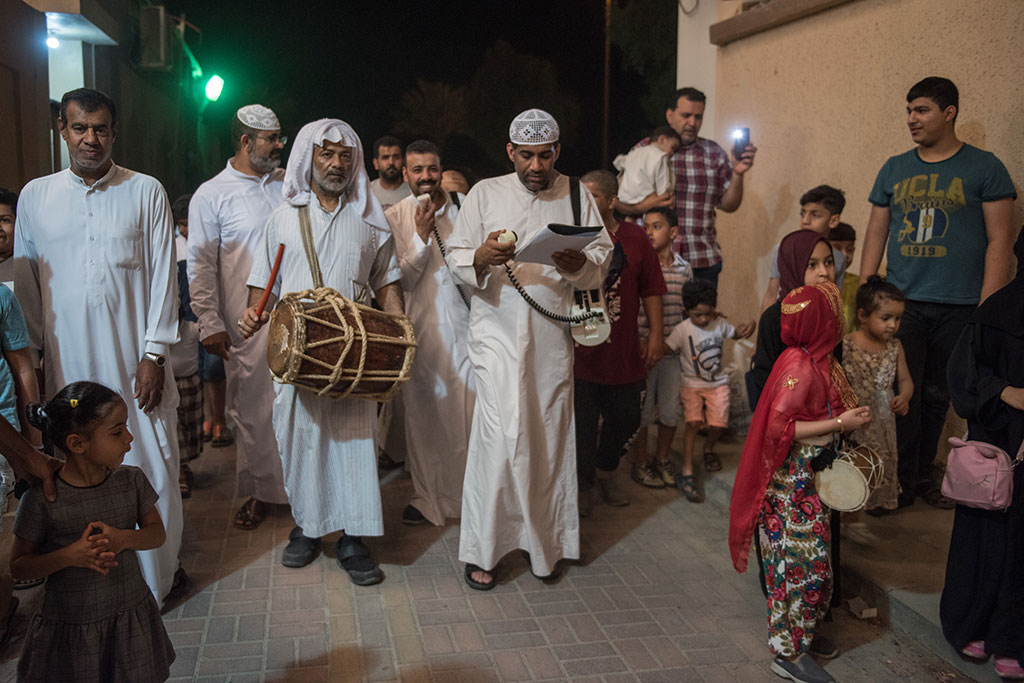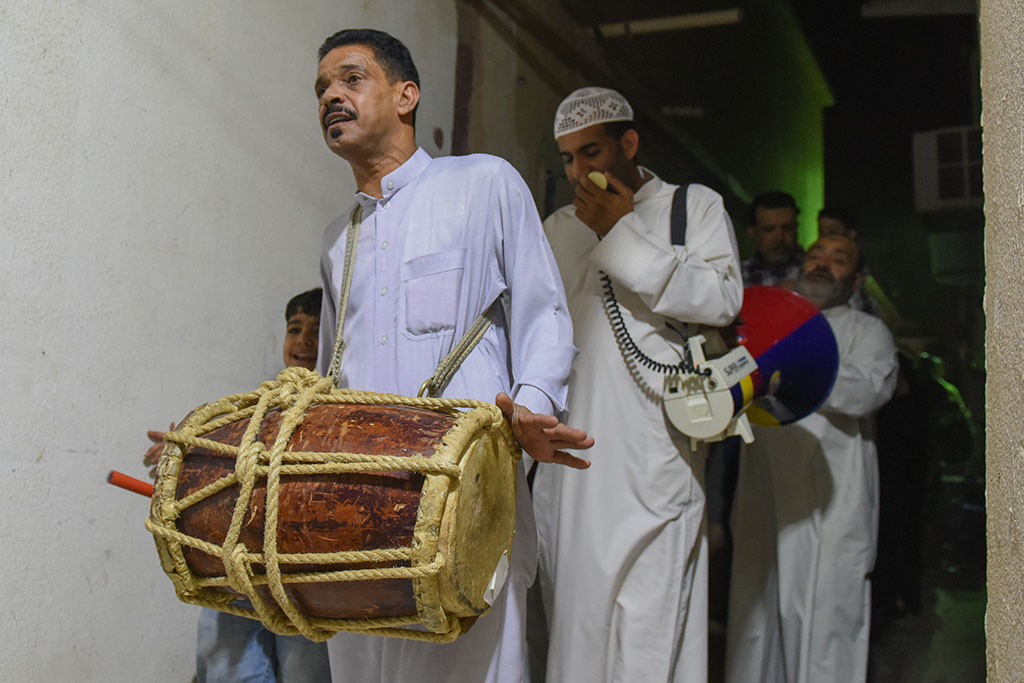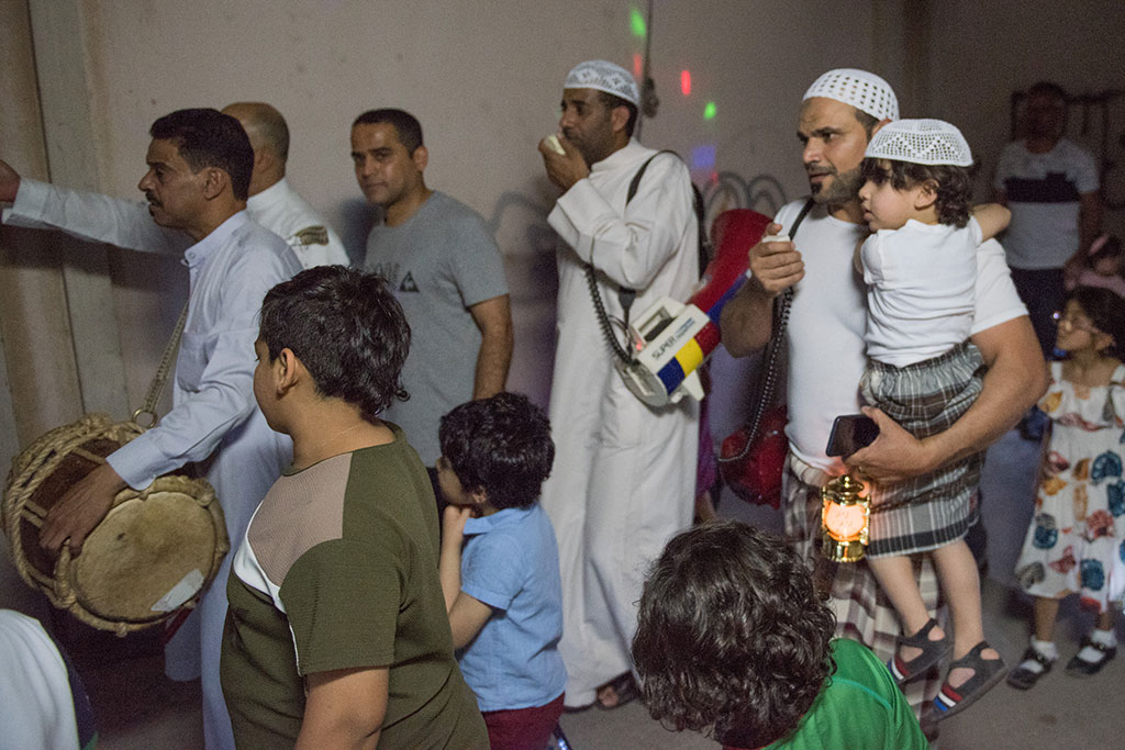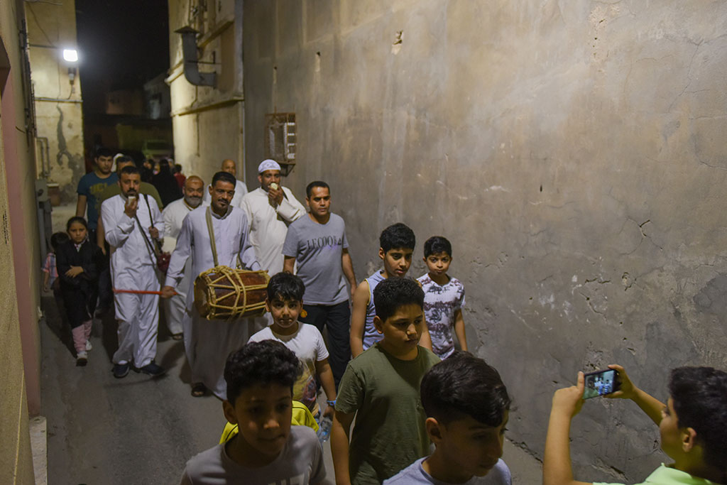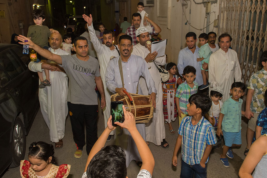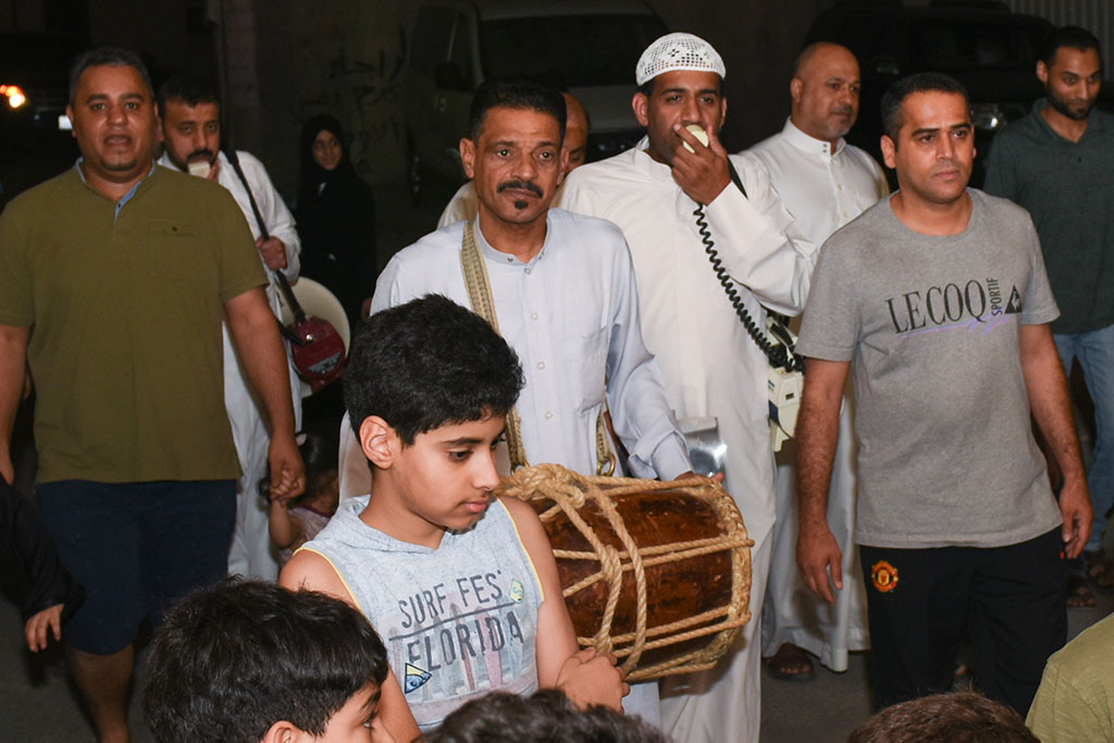 وذلك احتفالية لوداع شهر رمضان المبارك، وهم يرددون في فرح وسعادة ما يصدح به «المسحر» من أهازيج وشيلات.