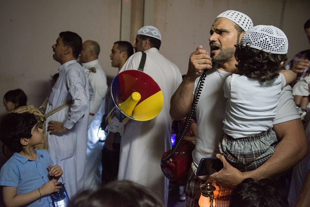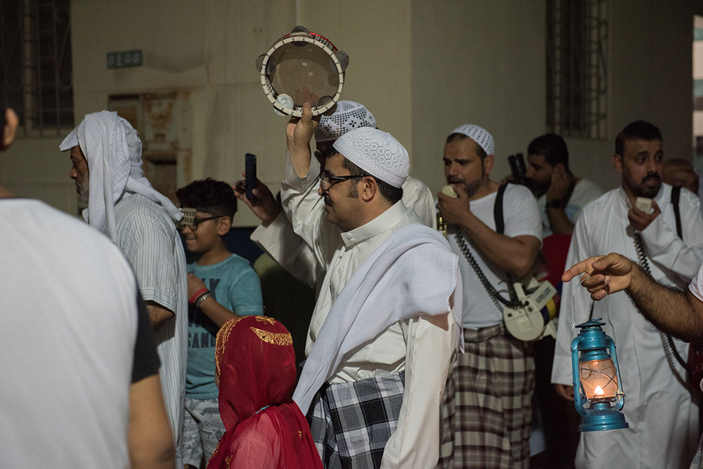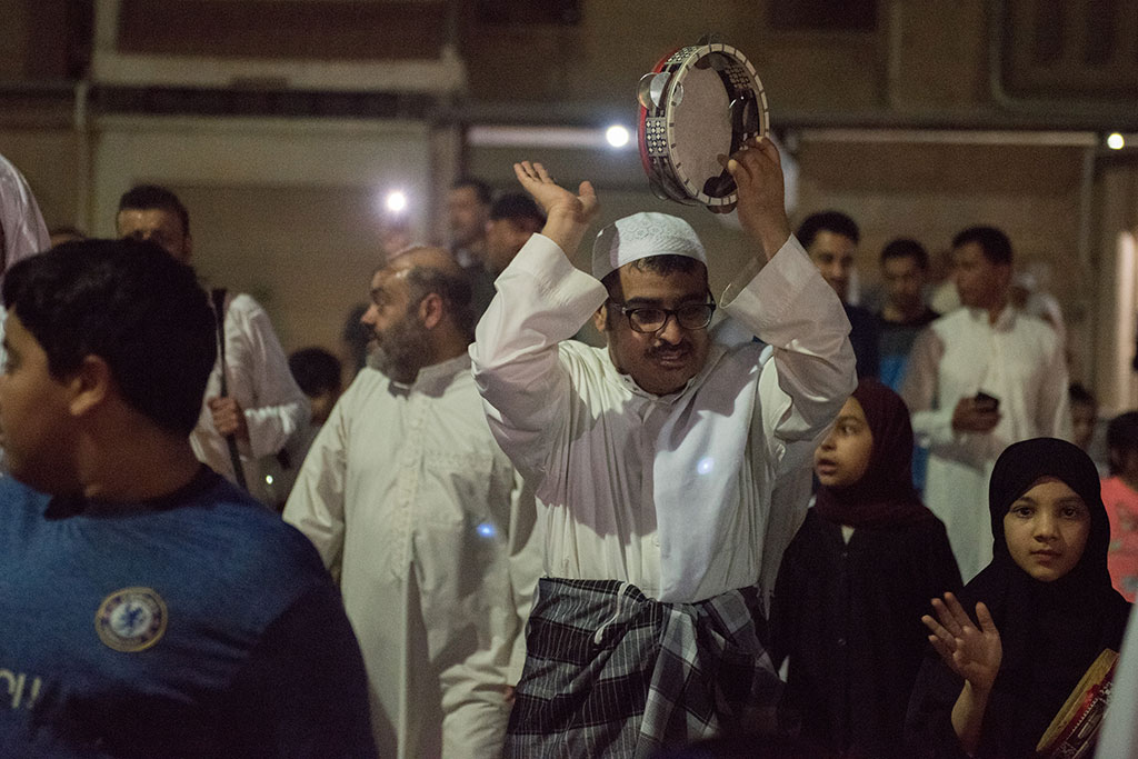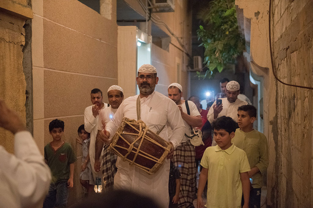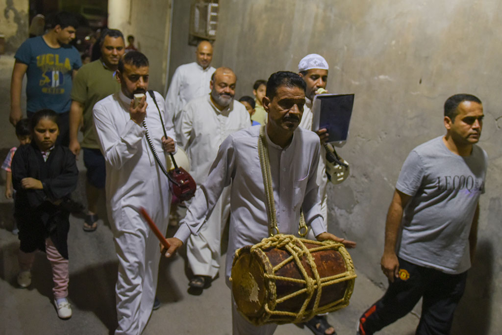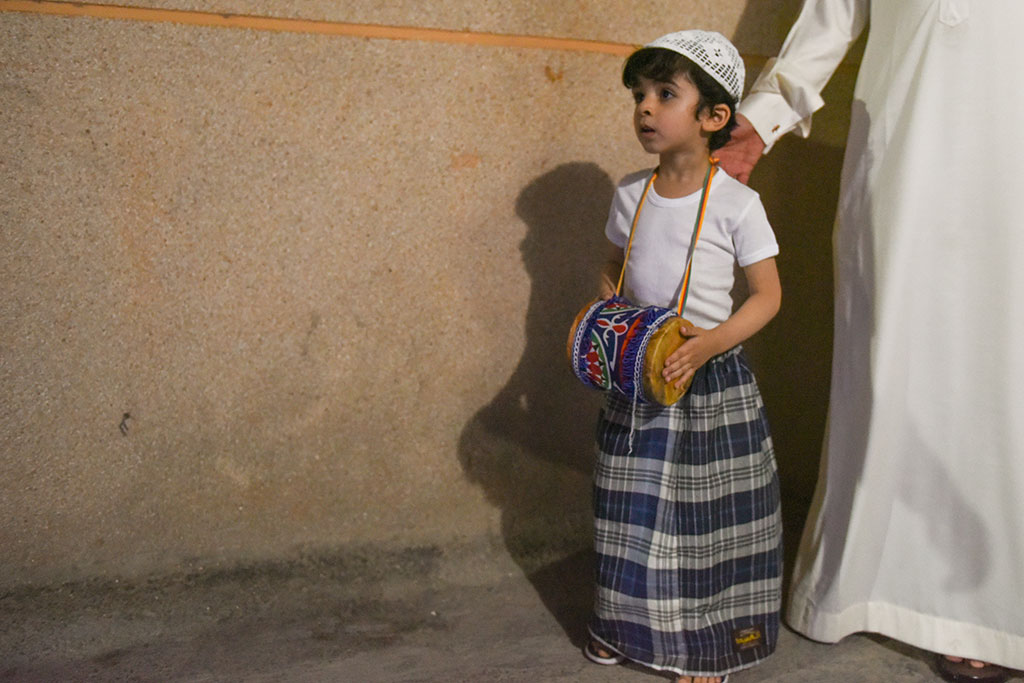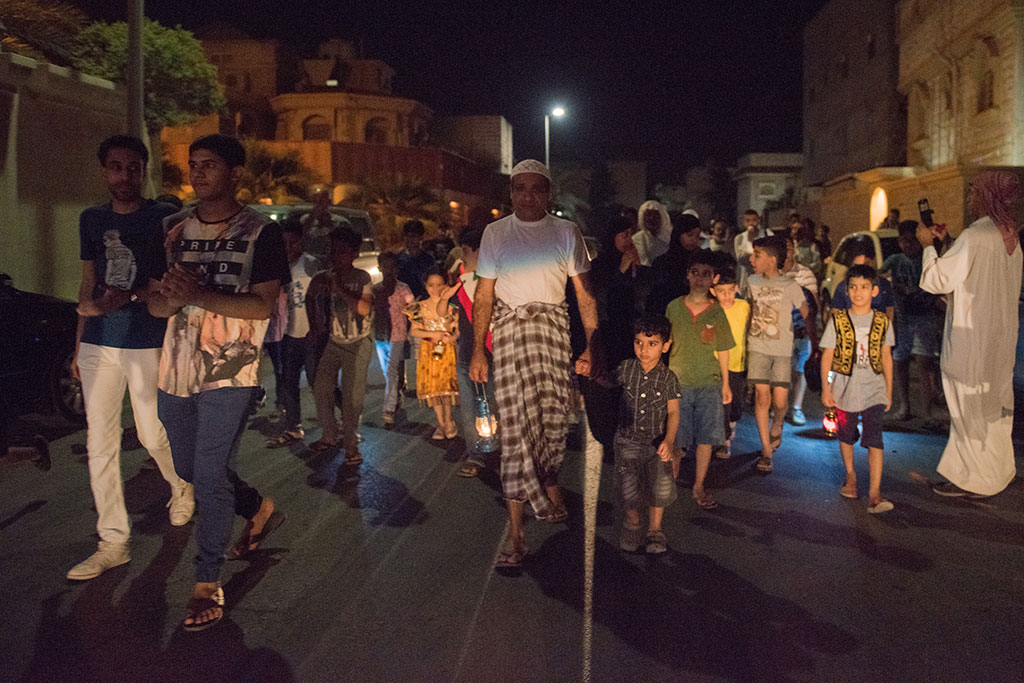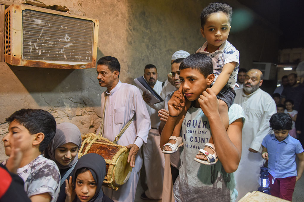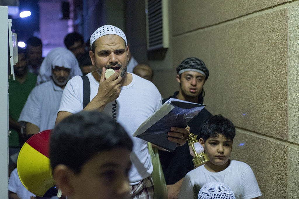 وذلك احتفالية لوداع شهر رمضان المبارك، وهم يرددون في فرح وسعادة ما يصدح به «المسحر» من أهازيج وشيلات.