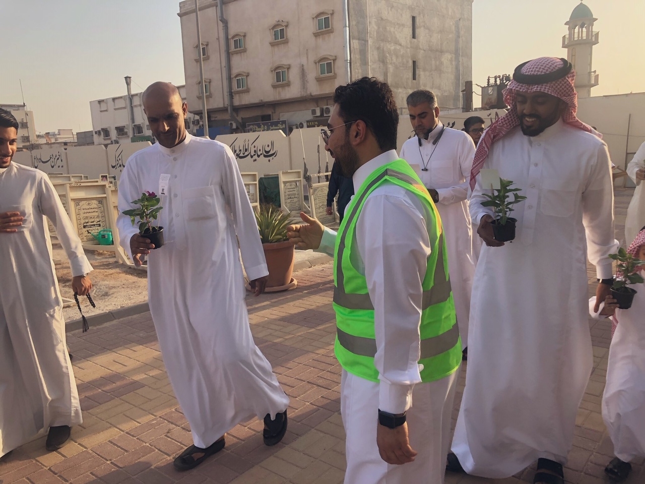 فريق تطوعي يوزع 500 شتلة عيدية لزوار المقابر في أول أيام العيد