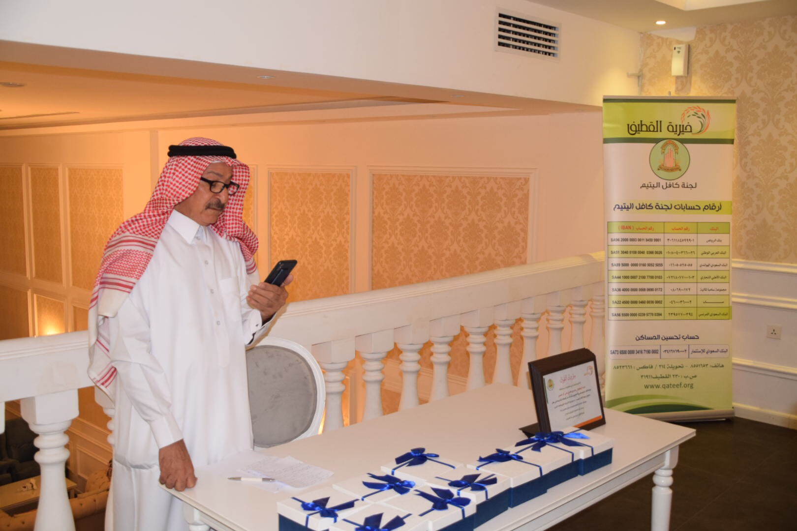 وذكر إن الهدف من الحفل تعزيز ثقافة التفوق والتشجيع على التحصيل العلمي وغرس الثقة في المستفيدين من خلال المشاركات الإجتماعية.