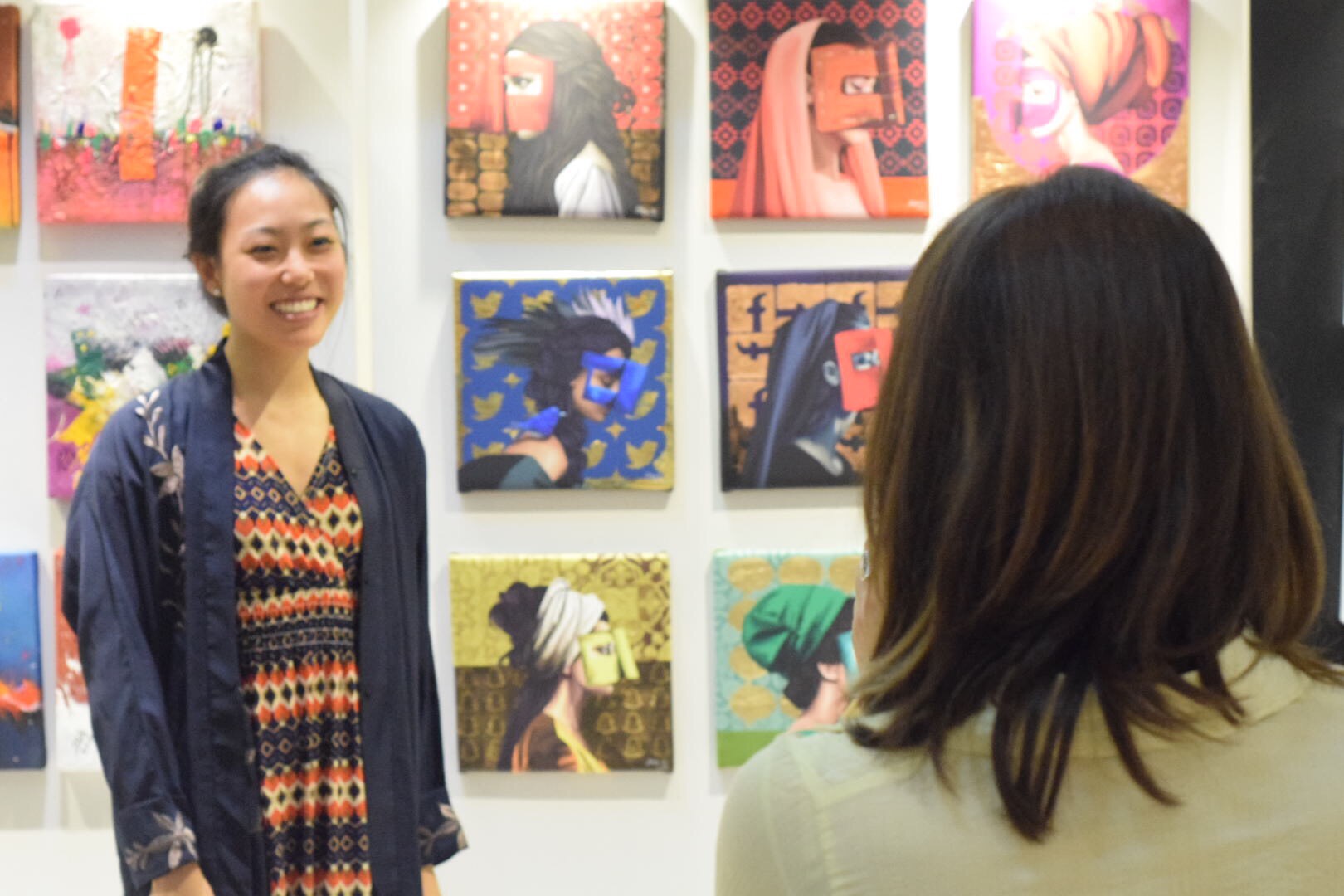 فيما جذبت انتباه الزوار لوحات فنانة الجرافيتي زينب الماحوزي، حيث تقدم بأعمالها المشاركة «جيل الآيباد» والهوس بالتكنولوجيا، وكيف أنها أصبحت شغلهم الشاغل مما جعلهم يكتفون باللعب وحدهم وينعزلون عن العالم.