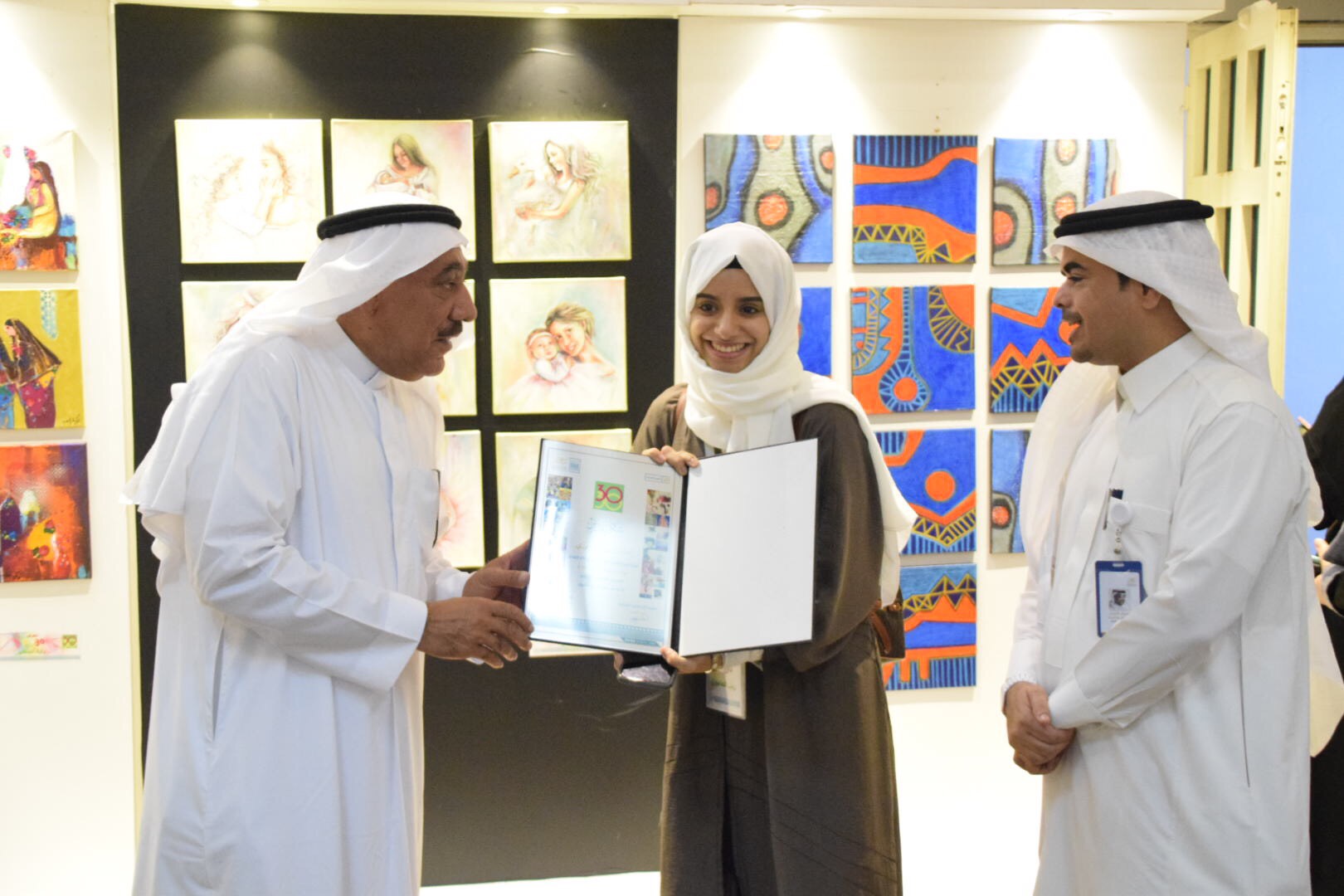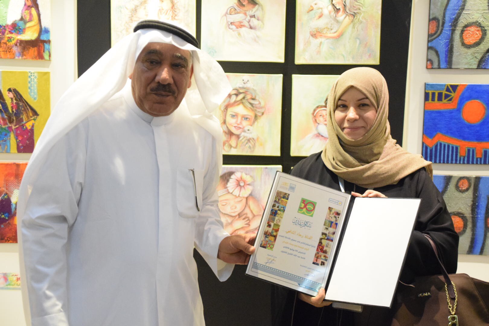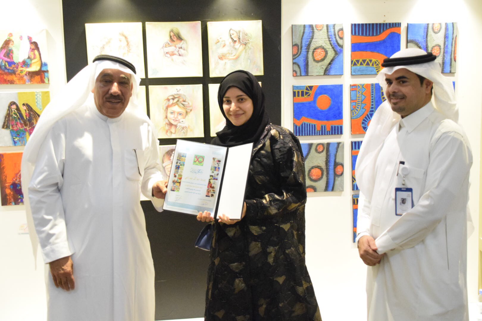 يشار إلى أن الفنانة التشكيلية نوال العجمي تشارك بأربع لوحات أكريليك، تعبر عن حالات يومية طبيعية لأي سيدة.
