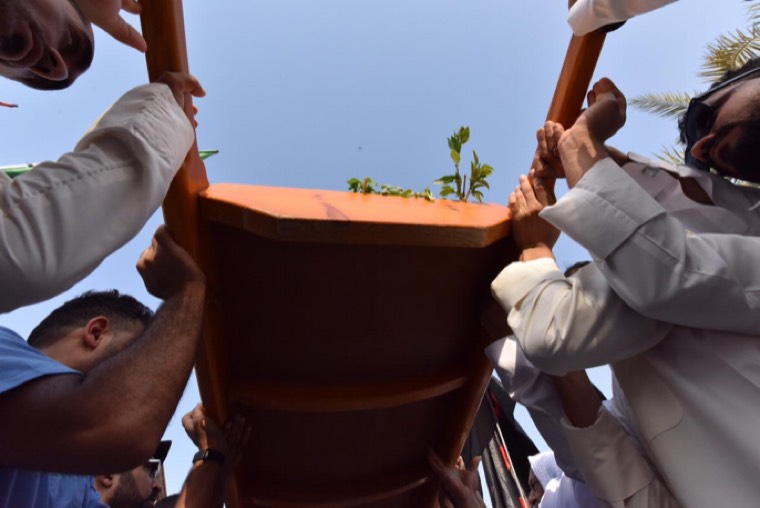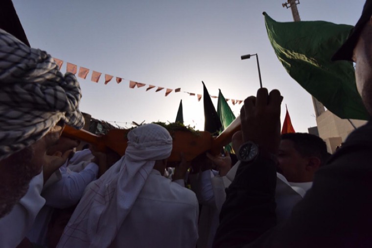وتقدم موكب التشييع الذي انطلق في الخامسة مساء العشرات من أبرز رجال الدين، حيث سارعت آلاف الأيدي لرفع نعش الراحل الذي غطي بلفافة سوداء مطرزة بالآيات القرآنية المذهبة.