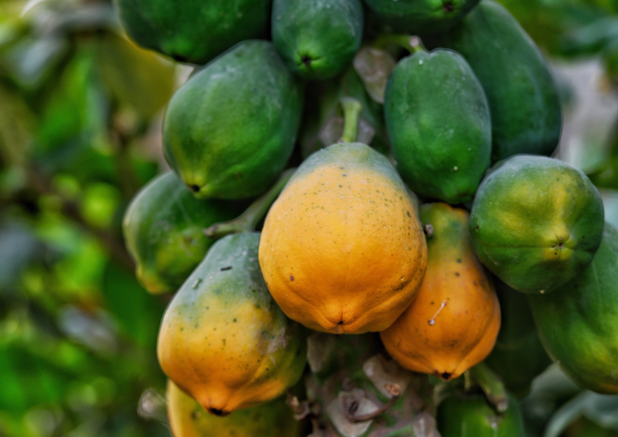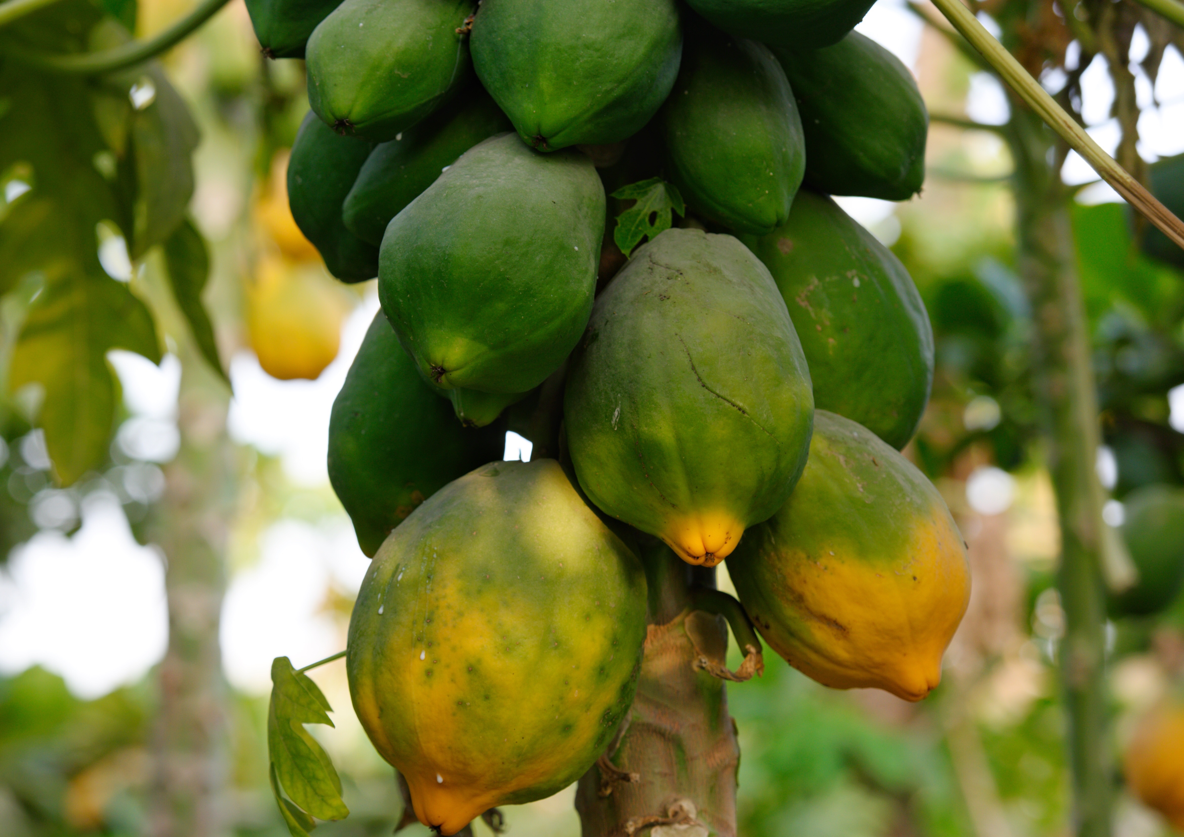 وأول ما يميز هذه الثمار، العادية في مظهرها الخارجي والأنيقة في شكلها الداخلي، هو احتواؤها على مادة باباين الكيميائية. وتتركز كميات هذه المادة في الثمار بشكل أكبر، وخاصة الناضجة منها، بالمقارنة مع نسبة وجودها في الأجزاء الأخرى لشجرة البابايا.