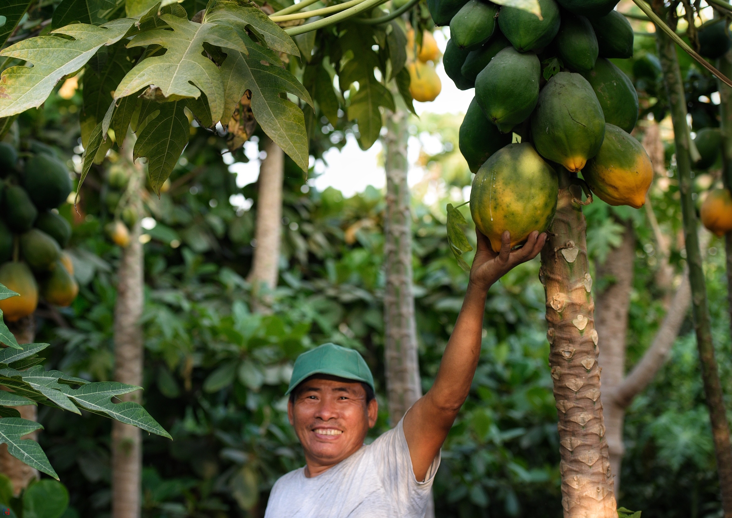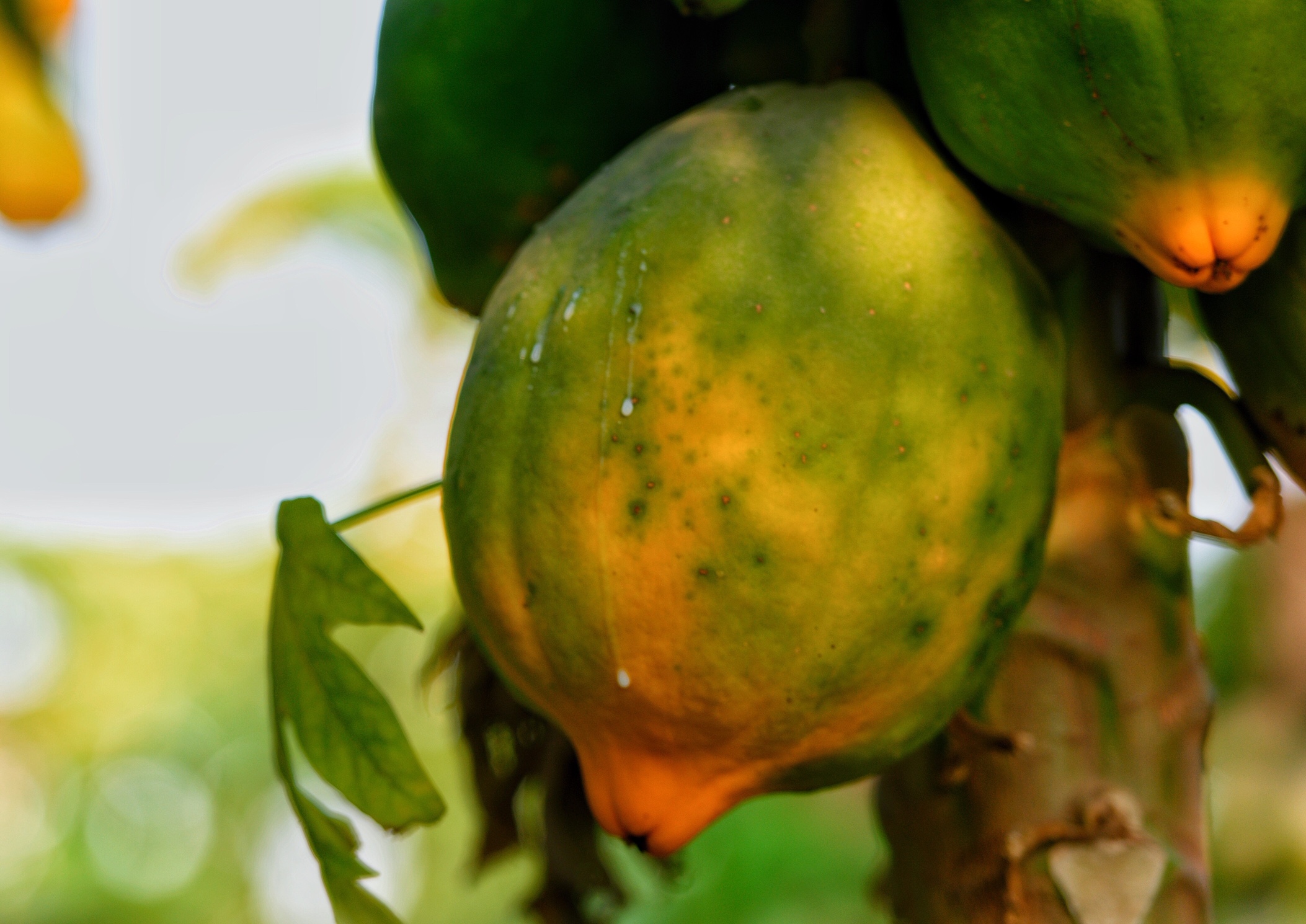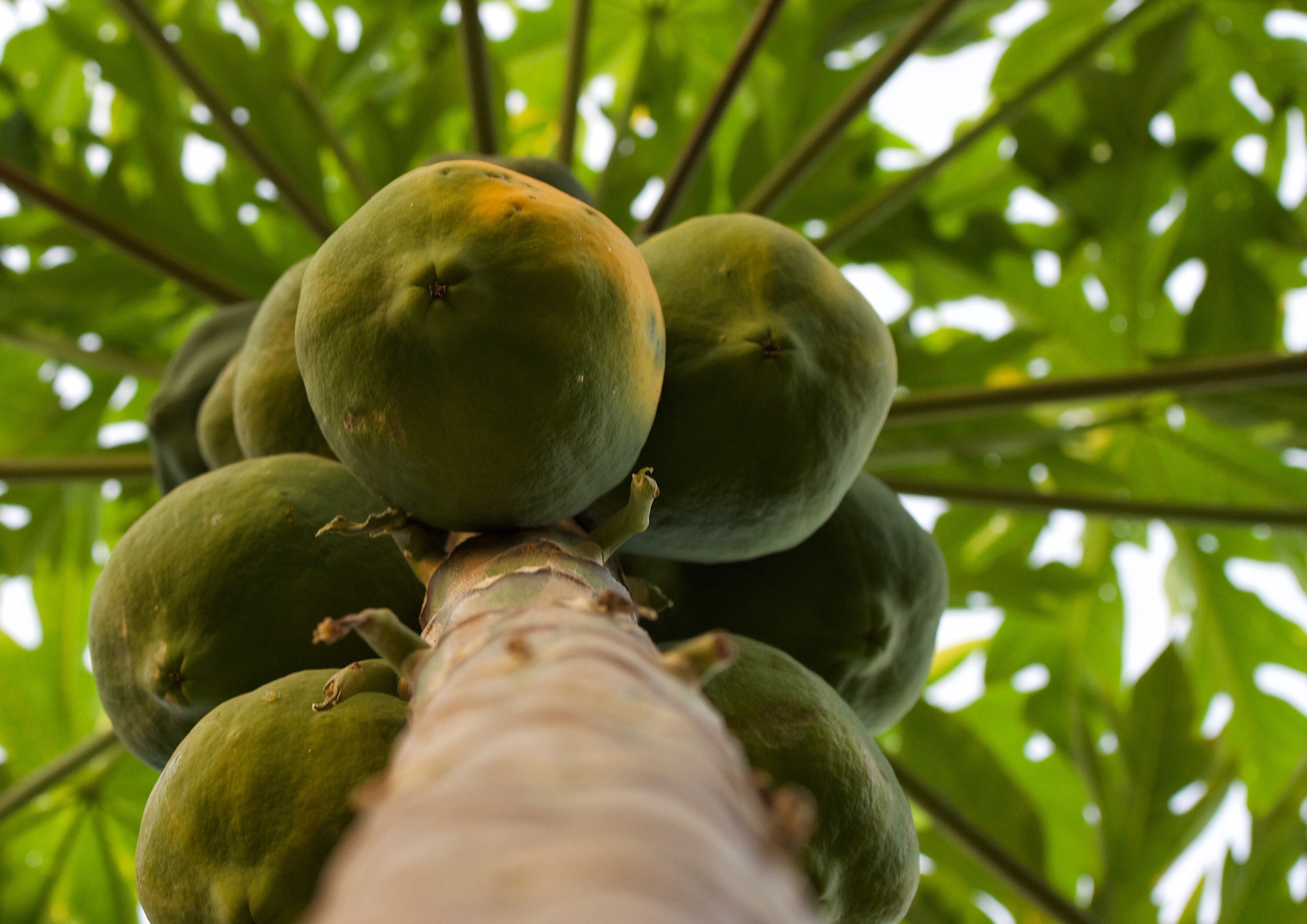 وبالرغم من اللون الأخضر أو الأخضر المشوب بصفرة المغلف لطبقة قشرة ثمرة البابايا الخارجية المتوسطة السُمْك، إلا أن لون لبها الحلو الطعم، يتموج ليأخذ مزيجاً بين لون لب المانغو ولب القرع.
