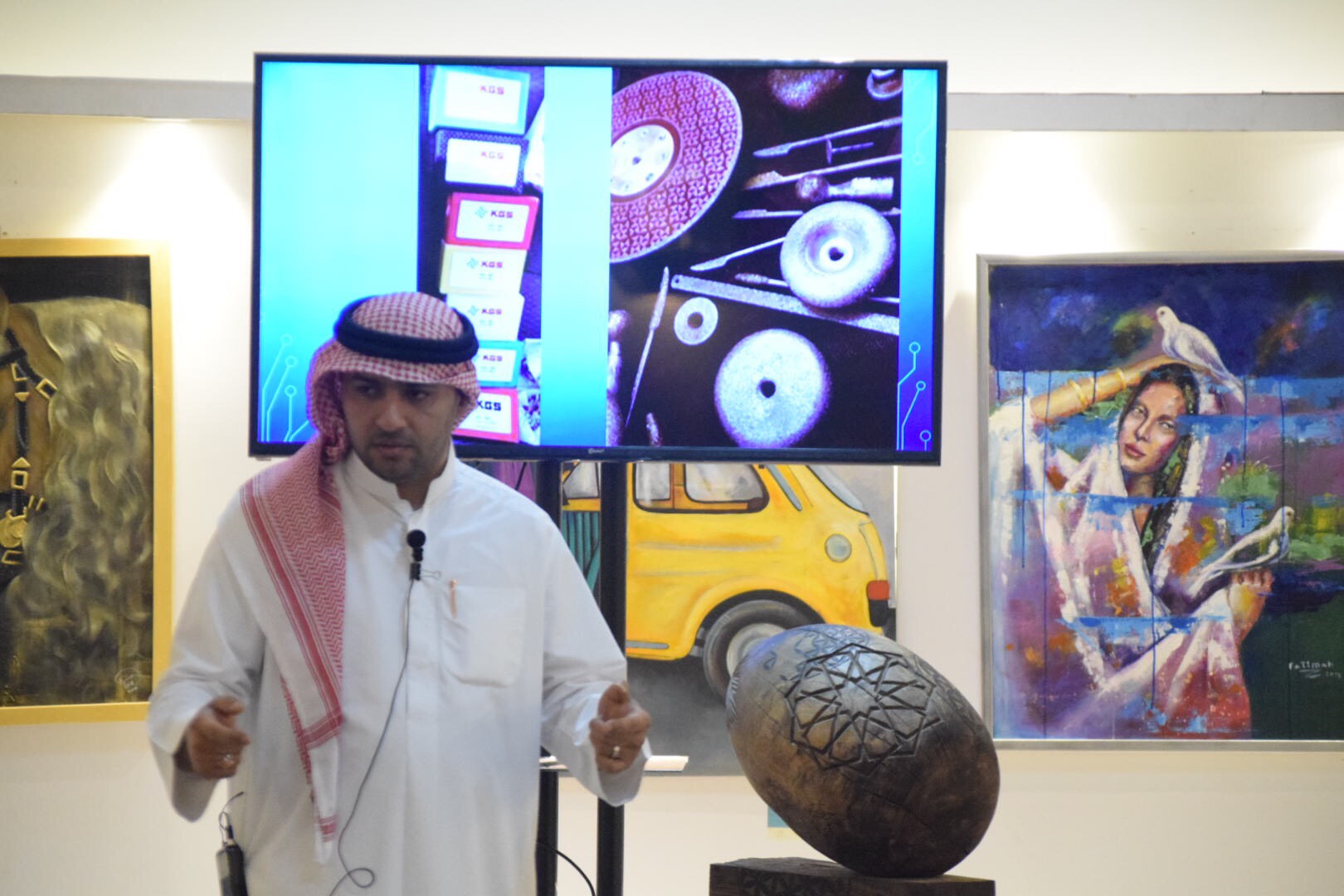 وأشار الى أن جمعية الثقافة والفنون تحتضن مجموعة كبيرة من الفنانين وبابها مفتوح للمشاركة وهي المكان الطبيعي الأول لهم، حيث تتيح للجميع فرصة إقامة معارضهم الخاصة بصالة عبدالله الشيخ بدون دفع إيجار مثل الصالات الخاصة؛ كونها جمعية غير ربحية.