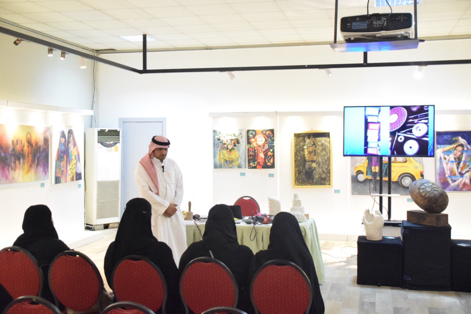 وبينت أنه وللسنة الرابعة يقام هذا الملتقى ليضم من خلال معرضه الجماعي أكثر من 44 فنانا وفنانة تم فرز أعمالهم من خلال قائمة ضمت أكثر من 100عمل، فيما شهد إقبالا وحضورا كبيرا من زوار ومتذوقي الفن، ولاقى ردود فعل إيجابية واسعة.