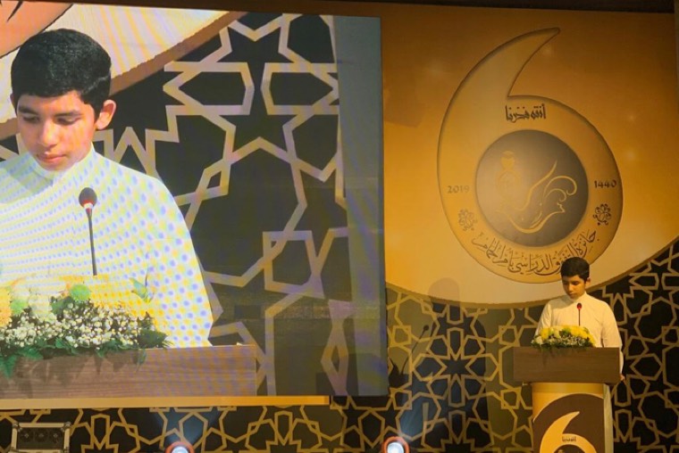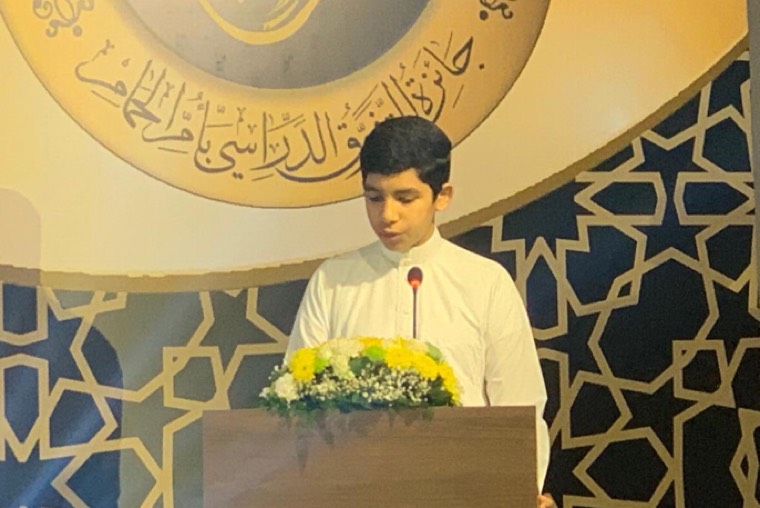 ثم ألقى الطالب حسين علي صالح ال شبيب كلمة الطلاب نيابة عن زملائه قدم فيها الشكر لأسرته لما وفرته له من دعم وتشجيع ورعاية، والى القائمين والداعمين للجائزة التي ساهمت في تحفيزه للوصول الى منصة التكريم