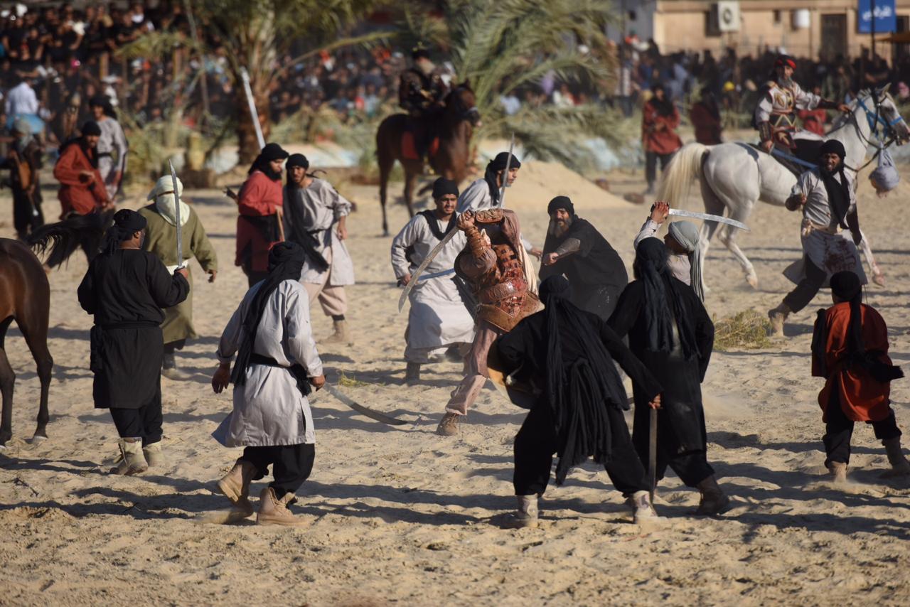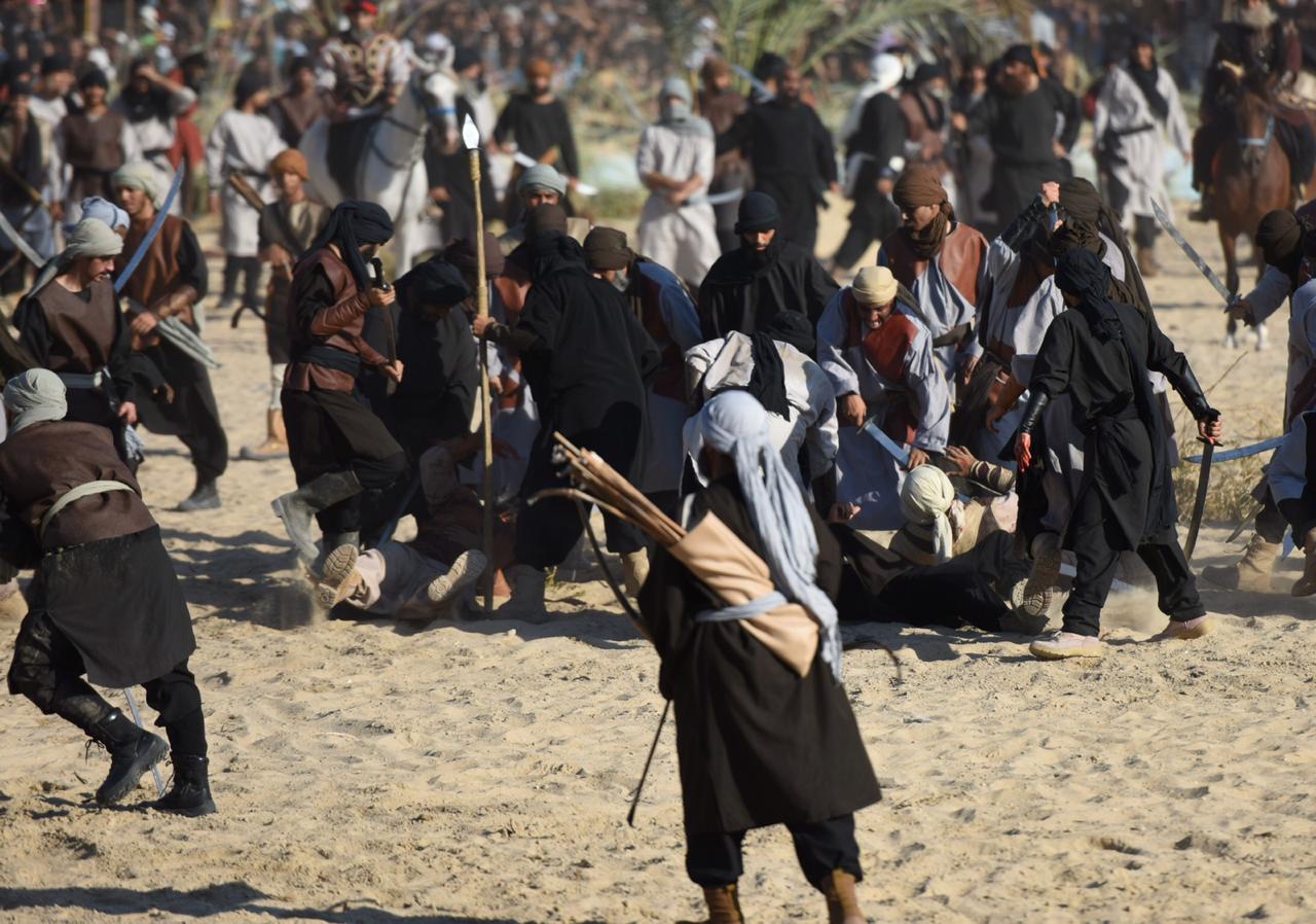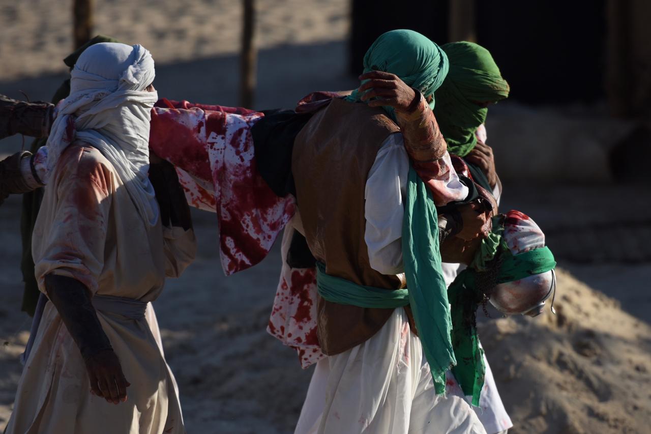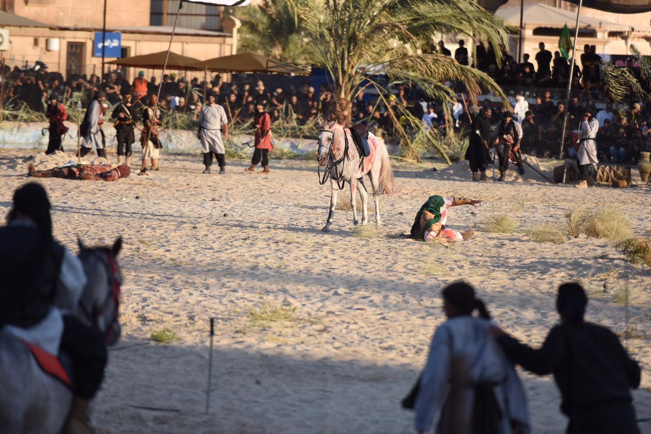 وجسدت المشاهد مصيبة واقعة كربلاء واستشهاد الإمام الحُسين والانصار، حيث قاموا بادوار بطولية بارزة في الميدان.