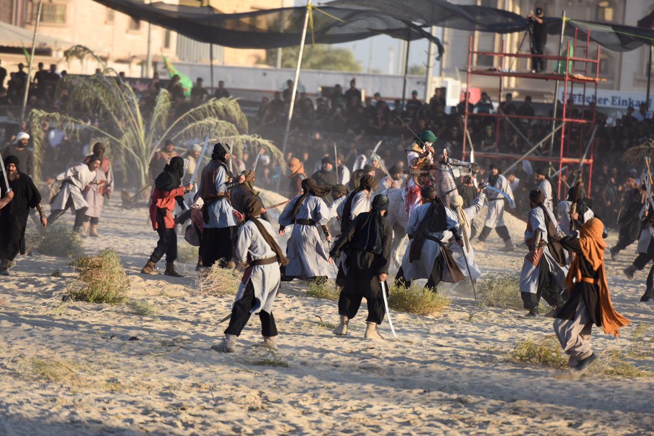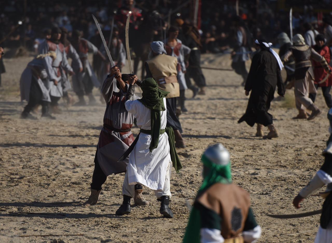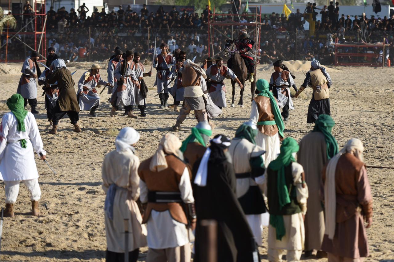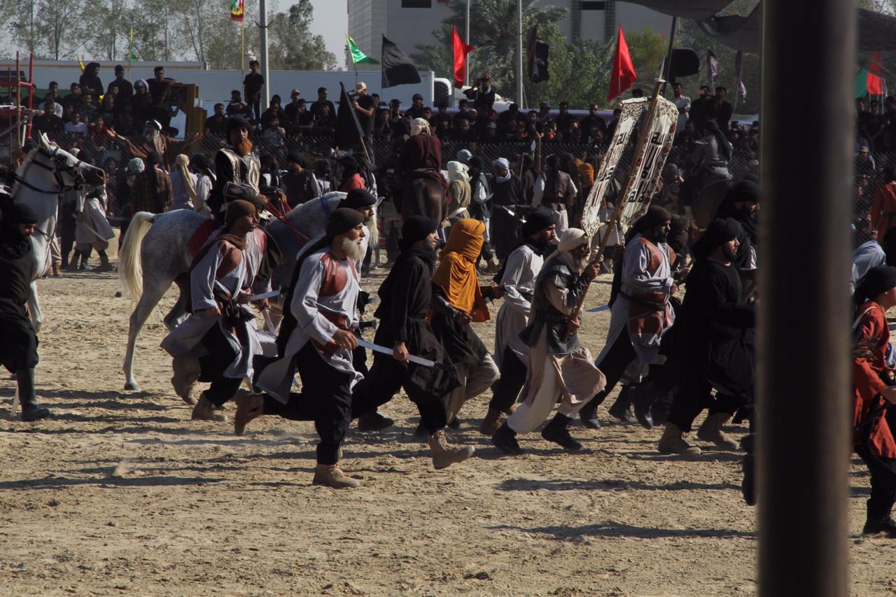 وجسدت المشاهد مصيبة واقعة كربلاء واستشهاد الإمام الحُسين والانصار، حيث قاموا بادوار بطولية بارزة في الميدان.