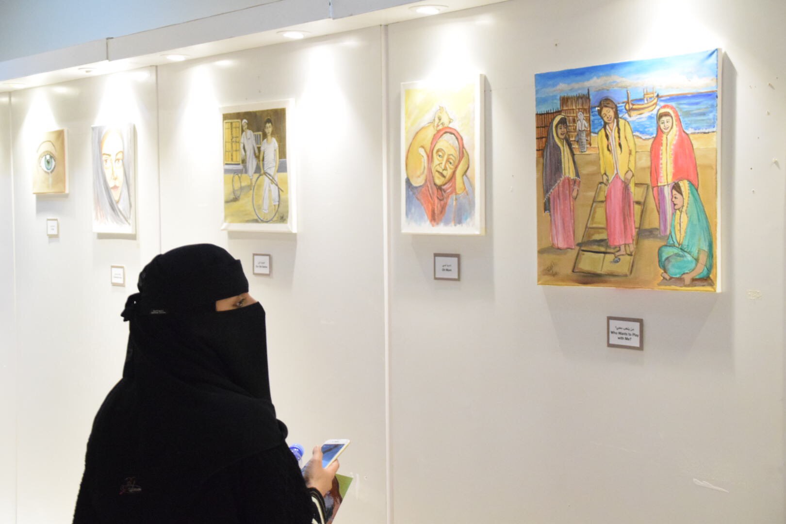 وتضمن المعرض ضم 45 عملاً نتاج محطات عاشت خلالها وعاصرت أحداثها فتأثرت بها وأثرت على فنها ورؤيتها فكانت أعمالها نافذة نرى من خلالها جزء من شخصيتها.