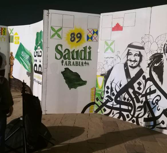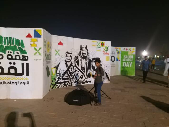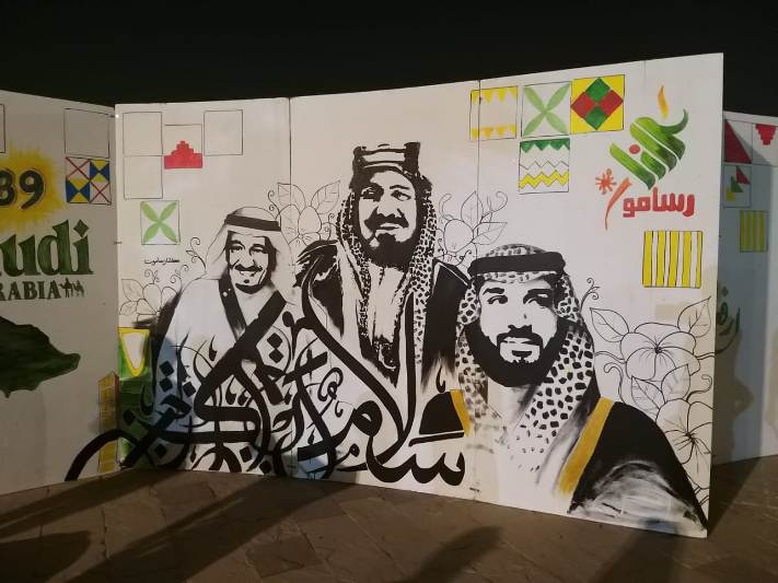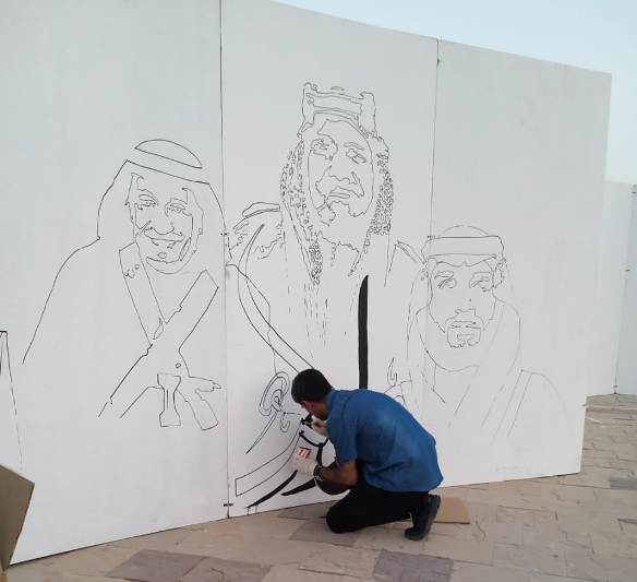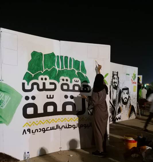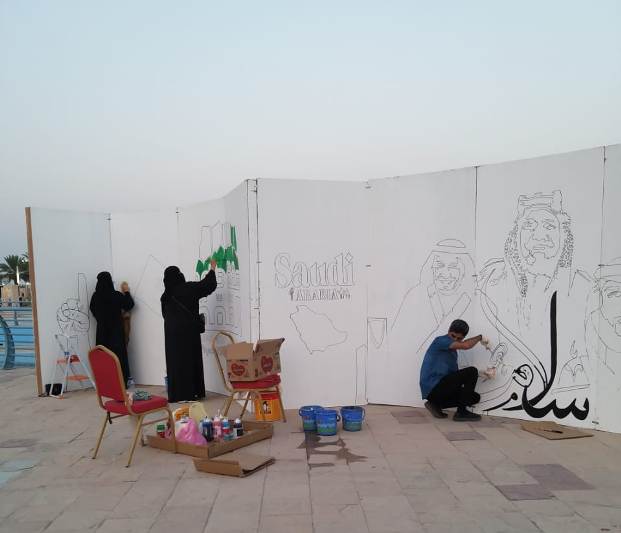 شاركت مجموعة «كلنا رسامون» برسم جدارية احتفالا بالعيد الوطني الـ 89، وذلك أمس الإثنين في منتزه الملك عبدالله البيئي بالأحساء.