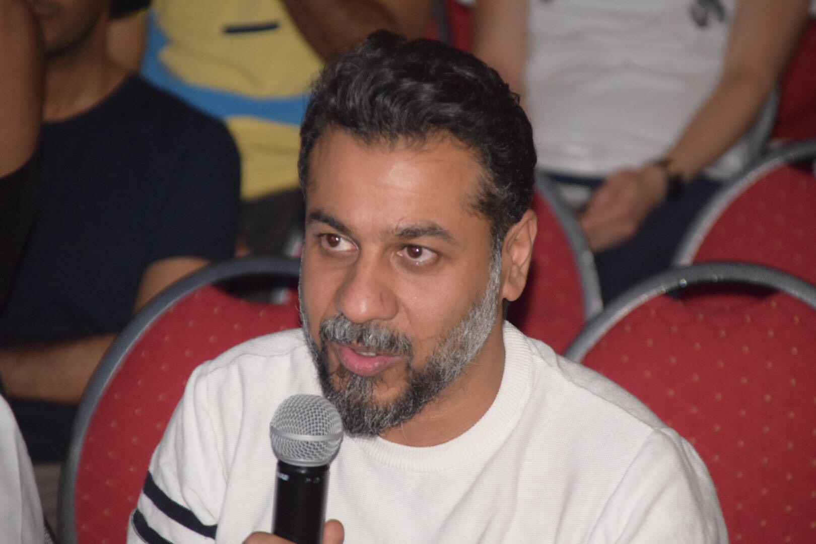 وألقى مدير بيت المسرح عباس الحايك كلمة جاء فيها، "مبتهج بهذا الملتقى، بهذا الاجتماع المسرحي الذي كنا نحتاجه منذ زمن، نحتاج للمسرح الذي يلهمُنا ويربي ذائقتنا، يعلمنا أبجديات الحب، نحتاج للمسرح لأن المسرح يهذب الأرواح، نحتاجه لنتخلص من التطرف من العنف.