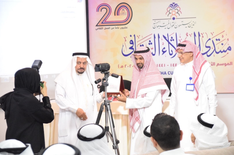 وأثنى في كلمته على المنتدى ومسيرته الثقافية وأشار بالجهود المبذولة في هذا المجال لتنمية الوعي الاجتماعي وتفعيل دور المثقفين.