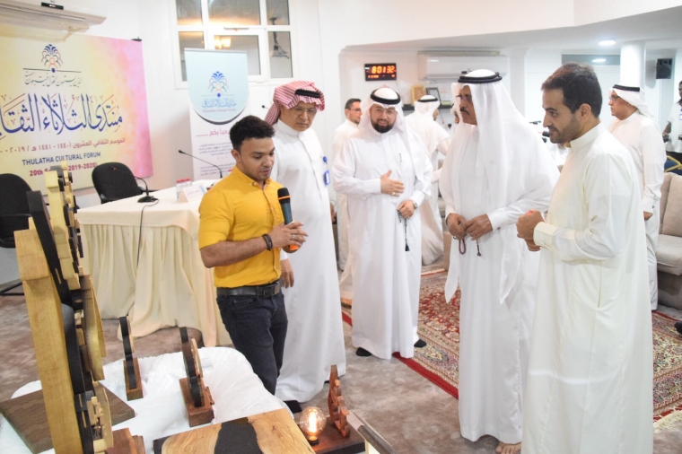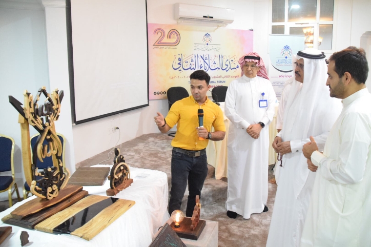 وشارك فنان النحت عبد العزيز العبد اللطيف بتقديم تجربته في فن النحت والحديث عنها وتطورها عارضا مجموعة من اعماله الفنية في المنتدى.