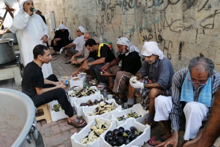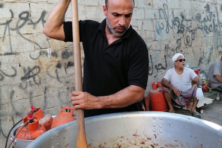 وعلى جري العادة القائمة منذ عقود يتجمع الطهاة ومساعدوهم بعد طلوع الشمس للإعداد الطعام المكون أساسا من الرز واللحم أو الدجاج والطهي في قدور كبيرة قد تبلغ عشرة أو تزيد تبعا للمناسبة.