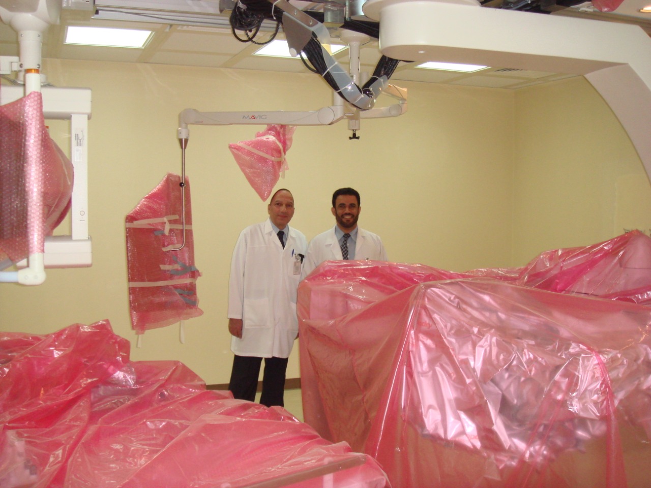 وقد تم تركيب جهاز متطور جداً لهذا الغرض، ويتم في هذه الوحدة القيام بالعديد من الفحوصات الإشعاعية التشخيصية كتصوير الشرايين، بالإضافة إلى إجراء الكثير من الإجراءات العلاجية الدقيقة كتوسعة الشرايين، وتفريغ الخراجات، وأخذ الخزعات وغير ذلك.