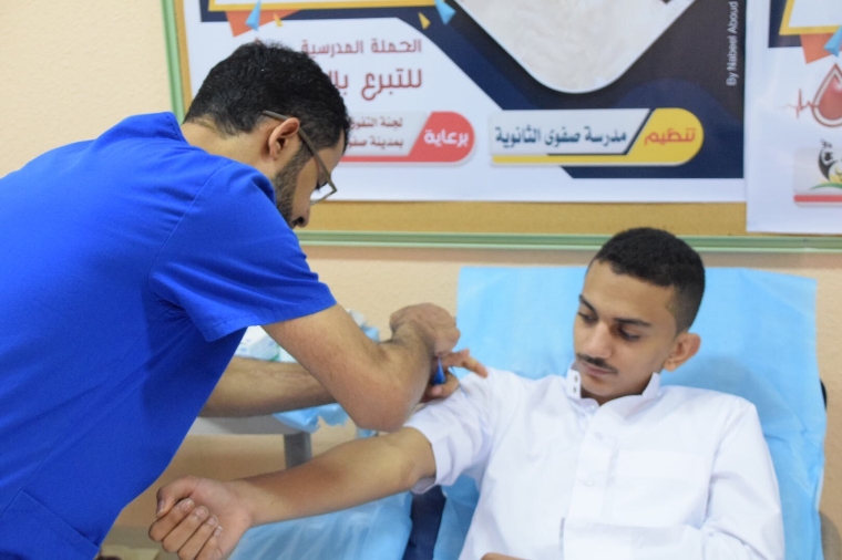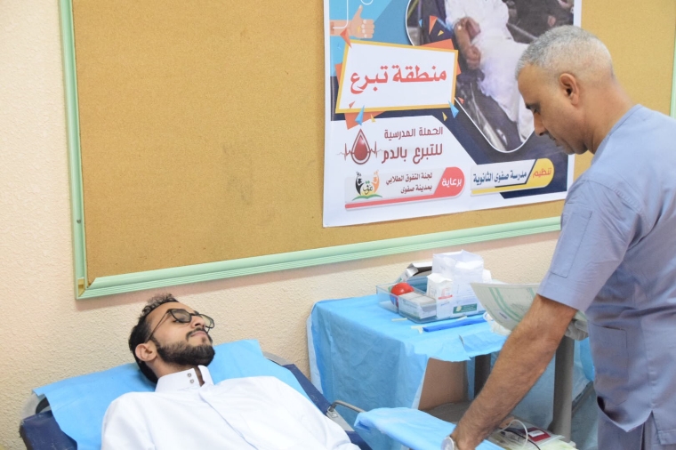 نظمت إدارة الشؤون الصحية بتعليم المنطقة الشرقية اليوم، بالشراكة مع بنك الدم بمستشفى القطيف المركزي، حملة التبرع بالدم ”دمي فداء لوطني“، في مقر مدرسة صفوى الثانوية.
