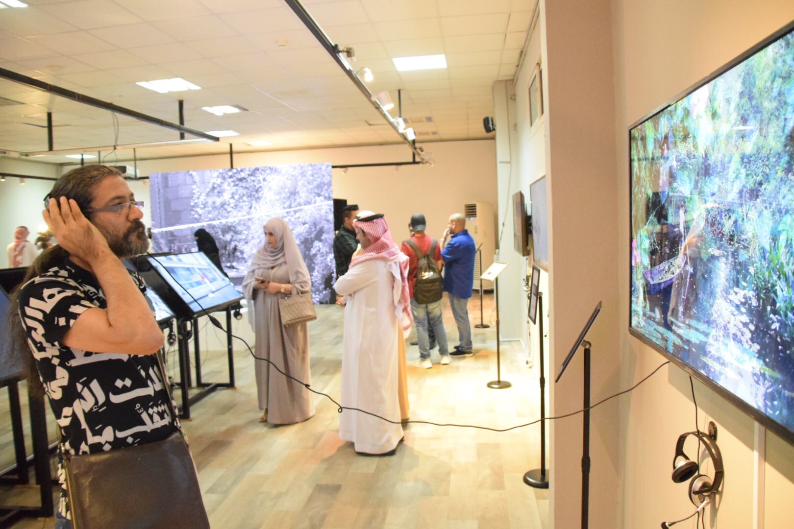 وتجول الحضور في القاعة التي تم تجهيزها بشاشات عرض متنوعة وأحجام متنوعة، بثت من خلالها الاعمال الخاصة بالفنانين المشاركين.