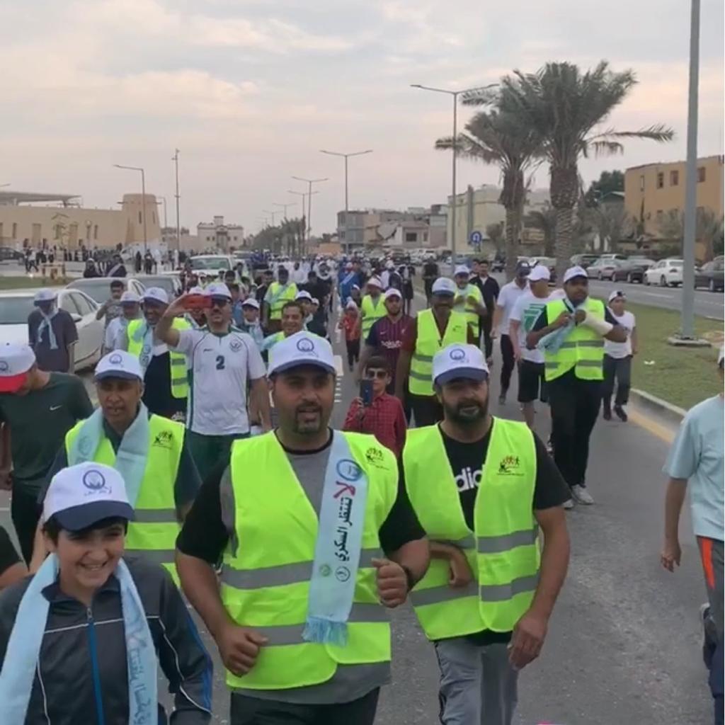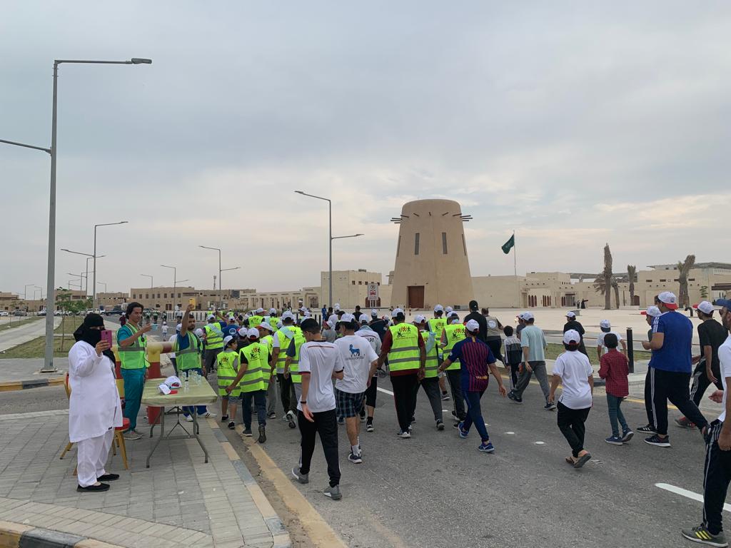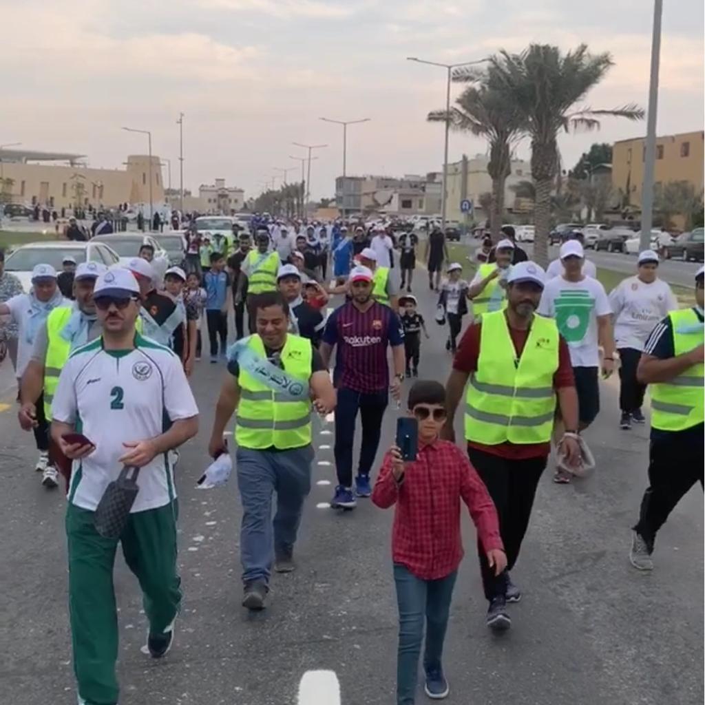 وقالت قطع المشاركون مسافة 2 كيلو متر في ممشى وسط العواميه كنوع من تعزيز الصحة العامة لدى لجميع أفراد المجتمع
