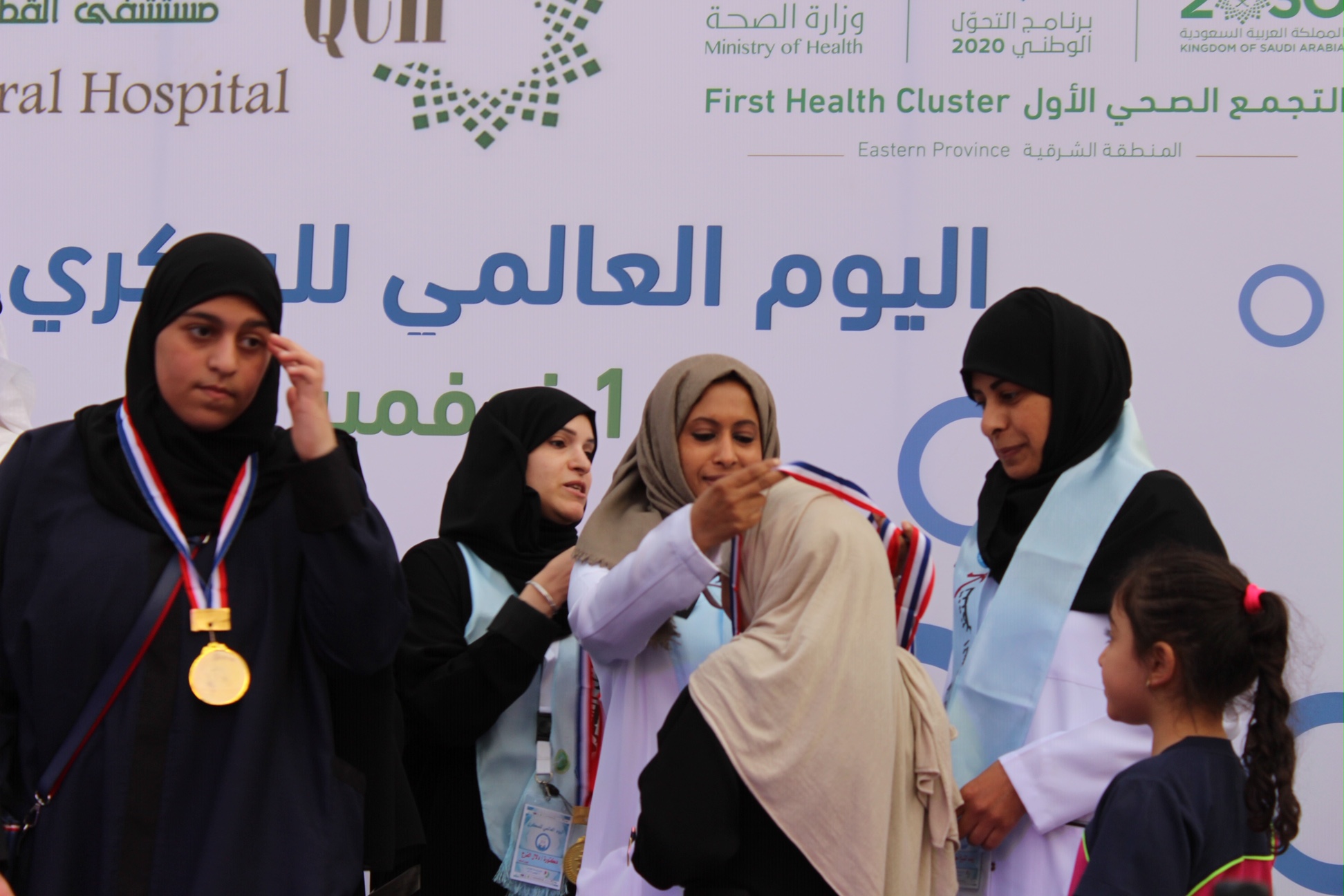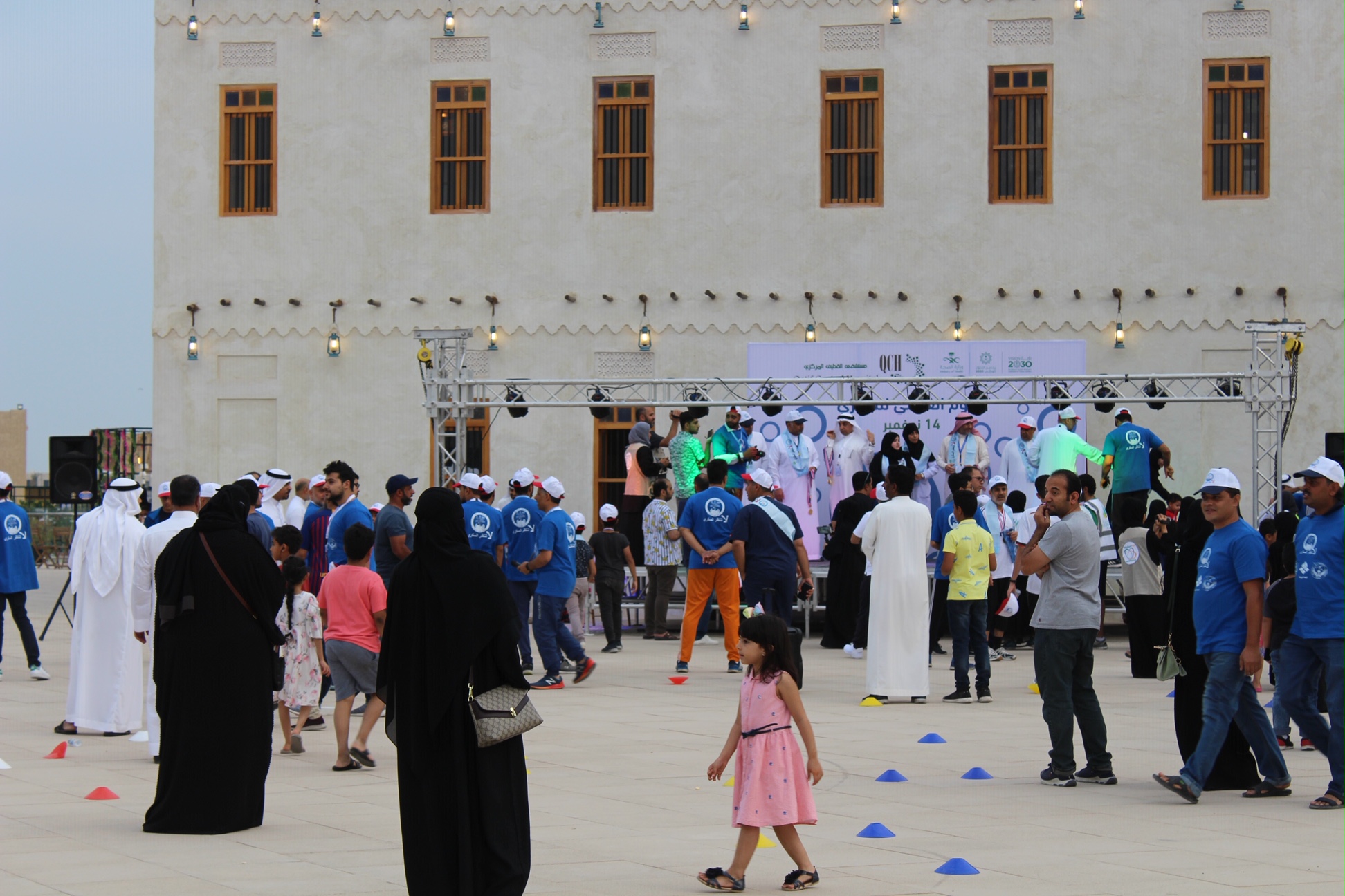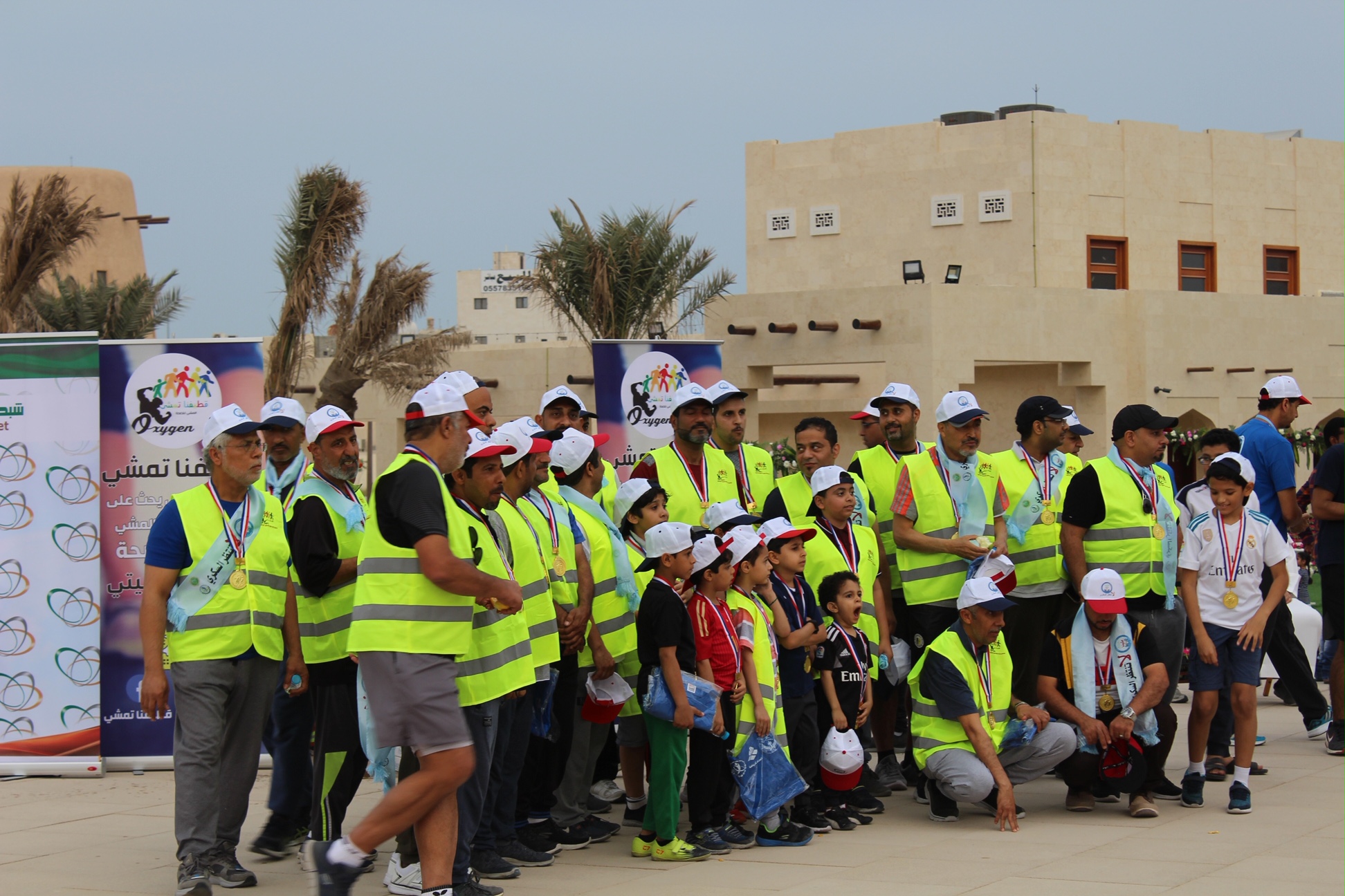 وقالت قطع المشاركون مسافة 2 كيلو متر في ممشى وسط العواميه كنوع من تعزيز الصحة العامة لدى لجميع أفراد المجتمع