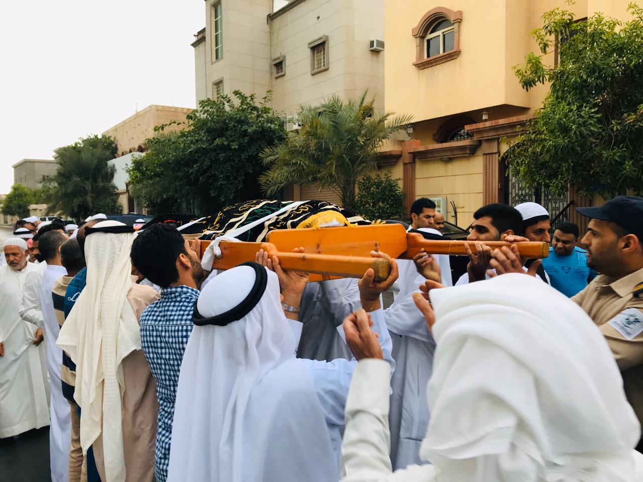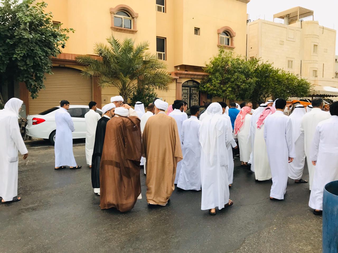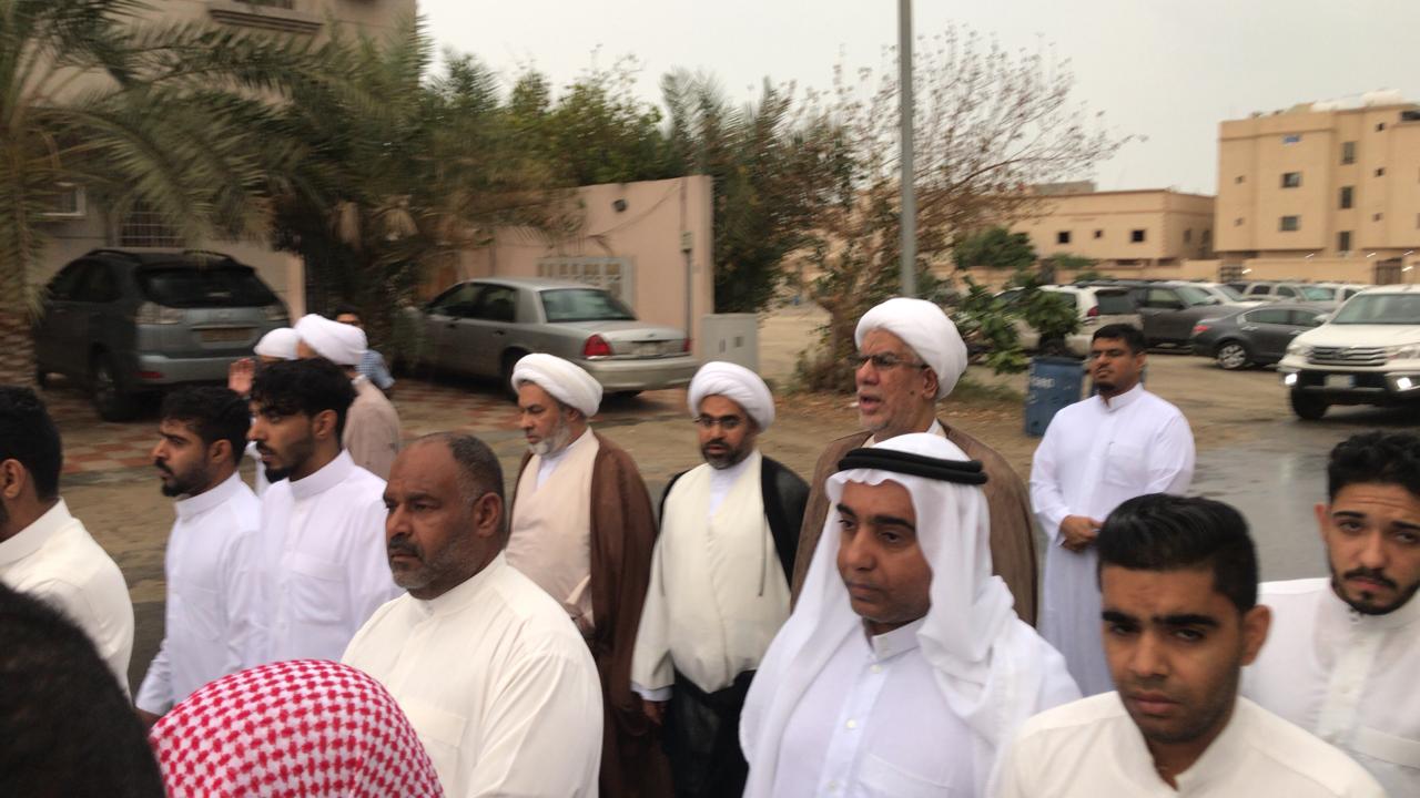 وانطلق موكب التشييع تحت زخات المطر الخفيفة، من مغتسل الحلة متجهين إلى مقبرة الحلة العامة وسط أصوات نعي متواصلة، بينما تقدم للصلاة على الفقيد الشيخ عبد الله اليوسف.