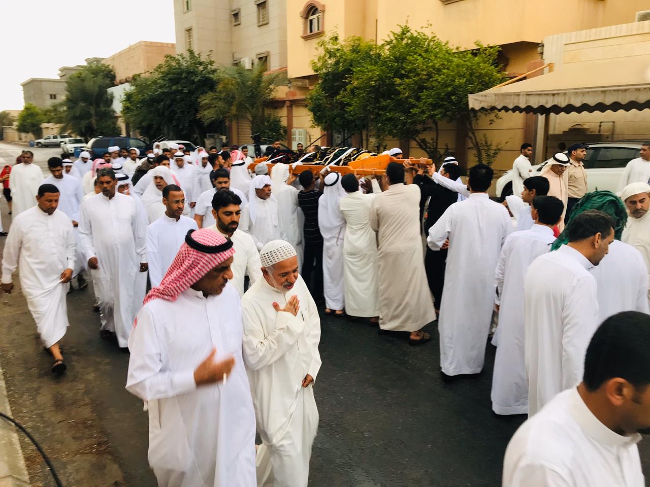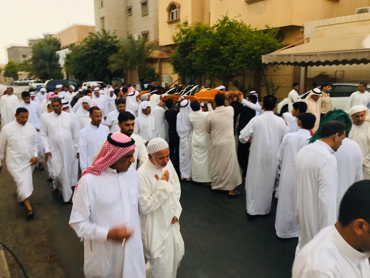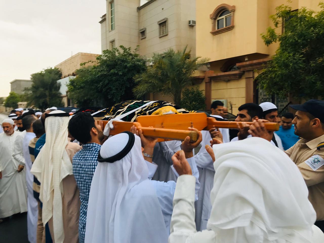 وانطلق موكب التشييع تحت زخات المطر الخفيفة، من مغتسل الحلة متجهين إلى مقبرة الحلة العامة وسط أصوات نعي متواصلة، بينما تقدم للصلاة على الفقيد الشيخ عبد الله اليوسف.