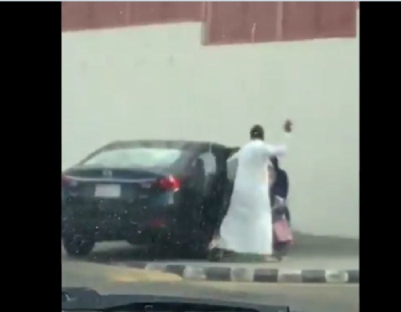 استاء مغردون في مواقع التواصل من ظهور شخص في مقطع فيديو يقوم خلاله يضرب رأس فتاة من المرحلة الابتدائية بهيكل سيارته أمام المارة فور خروجها من المدرسة.