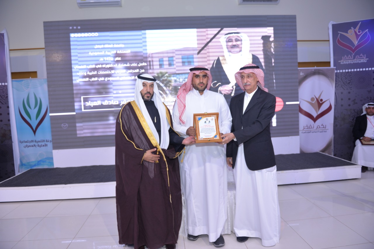 نظمت لجنة التنمية الاجتماعية الأهلية بمدينة العمران وبالشراكة مع لجنة ”بكم نفخر“ حفل تكريم لحملة شهادة الدكتوراه الأكاديمية من الجنسين من أبناء وبنات مدينة العمران بمحافظة الأحساء.