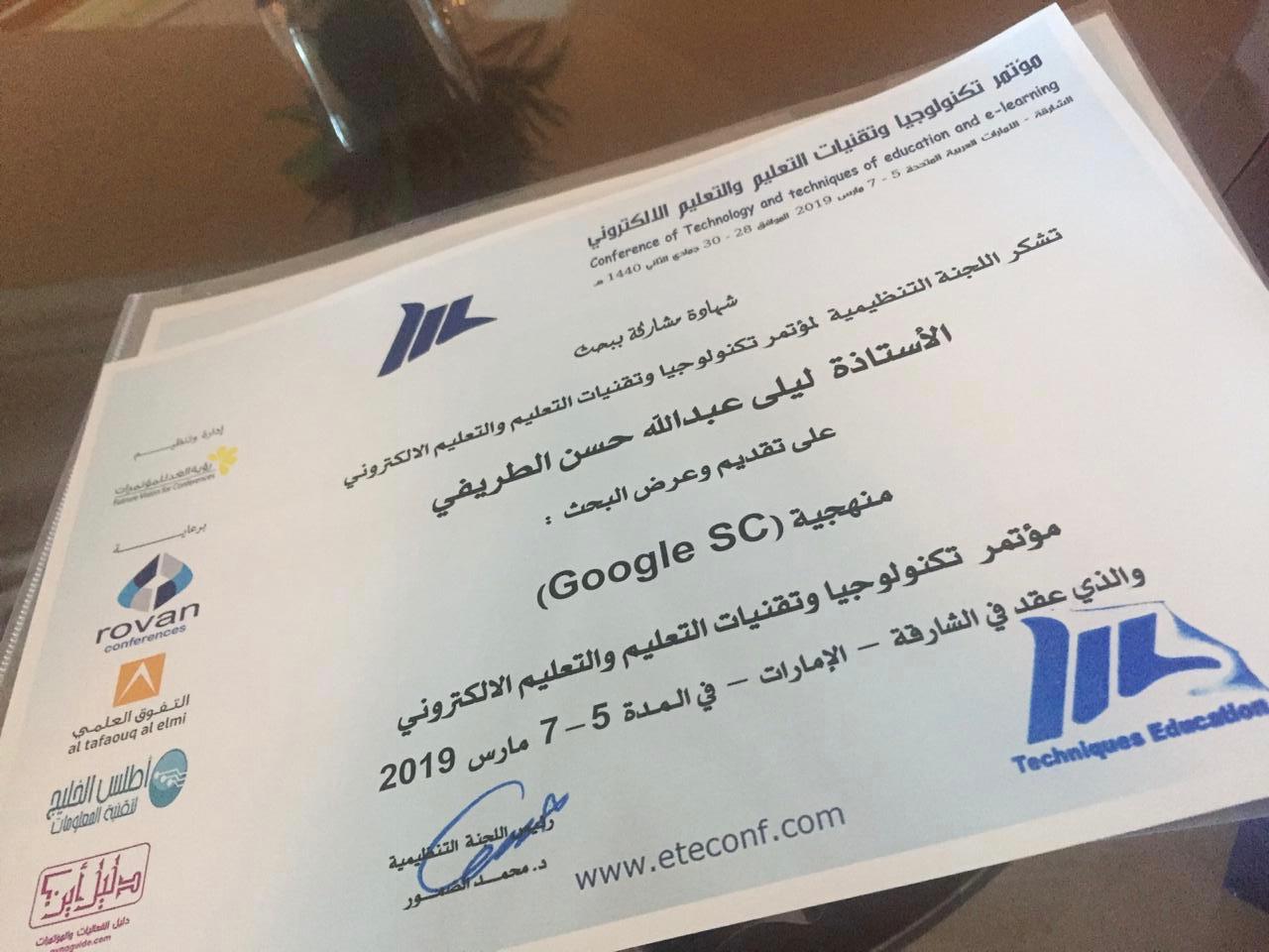 وقدمت عدة بحوث اجرائية واخر بحث بعنو ان Google SC في مؤتمر تكنولوجيا وتقنيات التعليم والتعليم الالكتروني بدولة الامارات وملصق علمي بعنوان