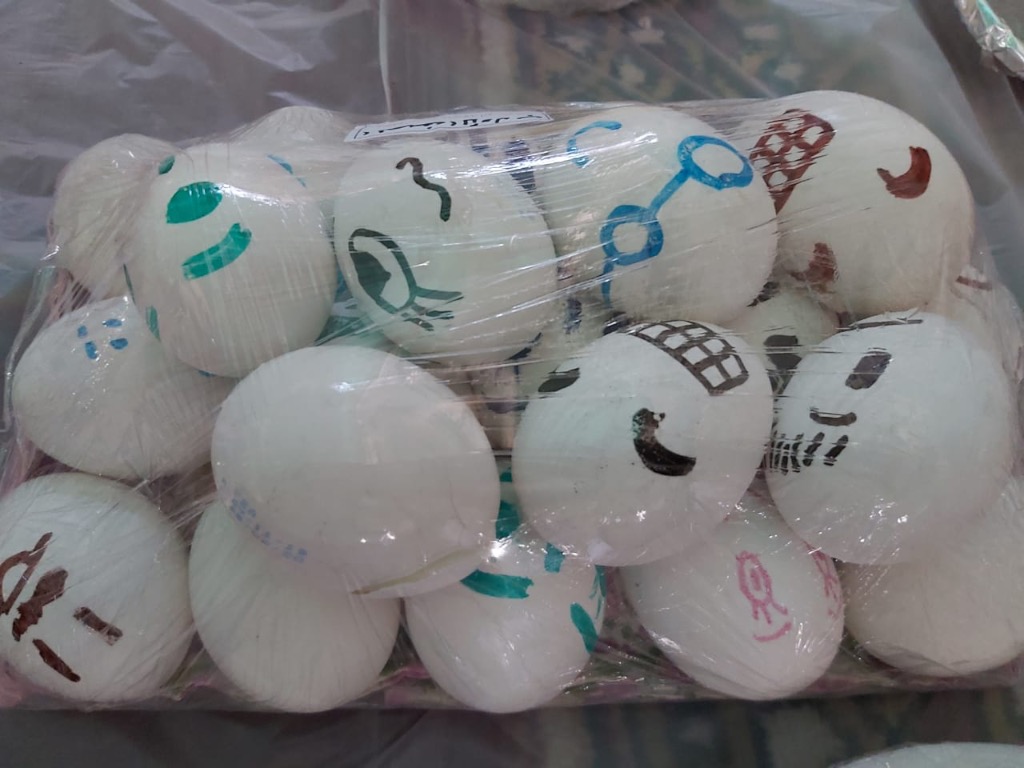 جمعت سفرة طولها 80 مترا 650 طبقا من البيض في مهرجان ”البيض“ الأول التي تنظمه مدرسة اليرموك الابتدائية بصفوى.