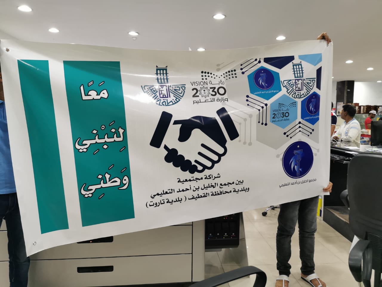 وتأتي المبادرة بالتعاون مع بلدية تاروت وبلدية محافظة القطيف تحت شعار ”معًا لنبني وطني“ بمشاركة طلاب المدرسة في أعمال الدهان.