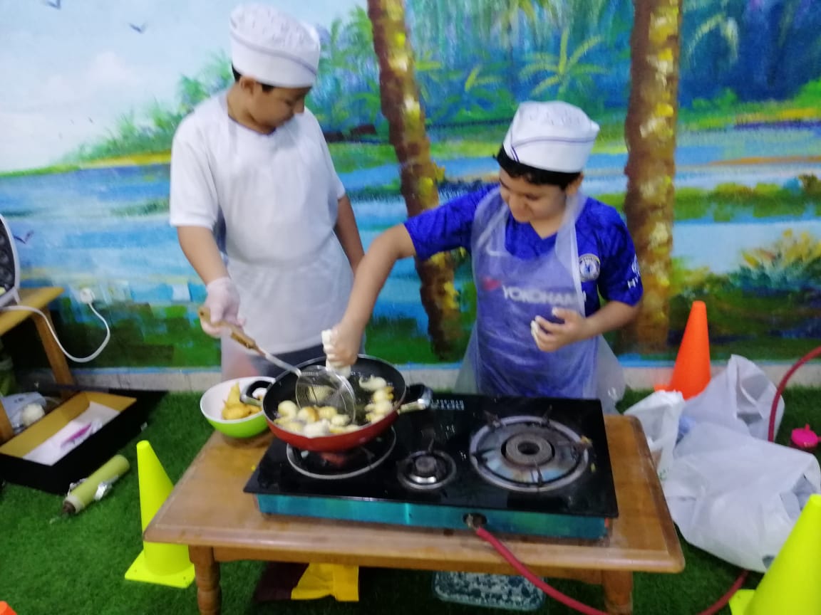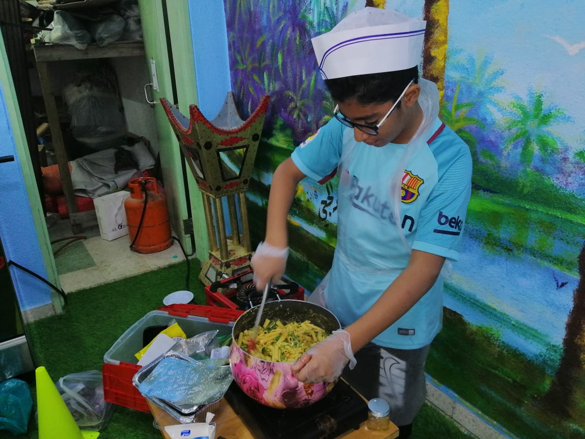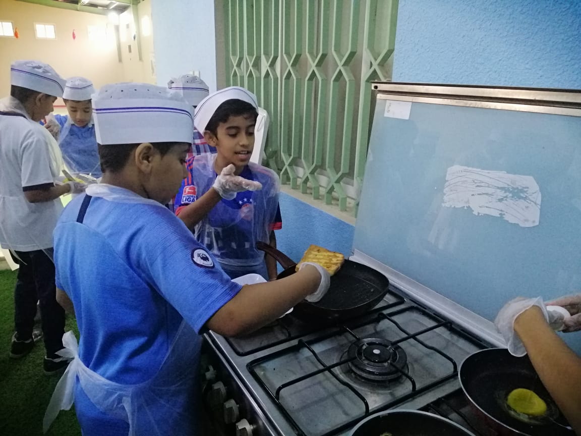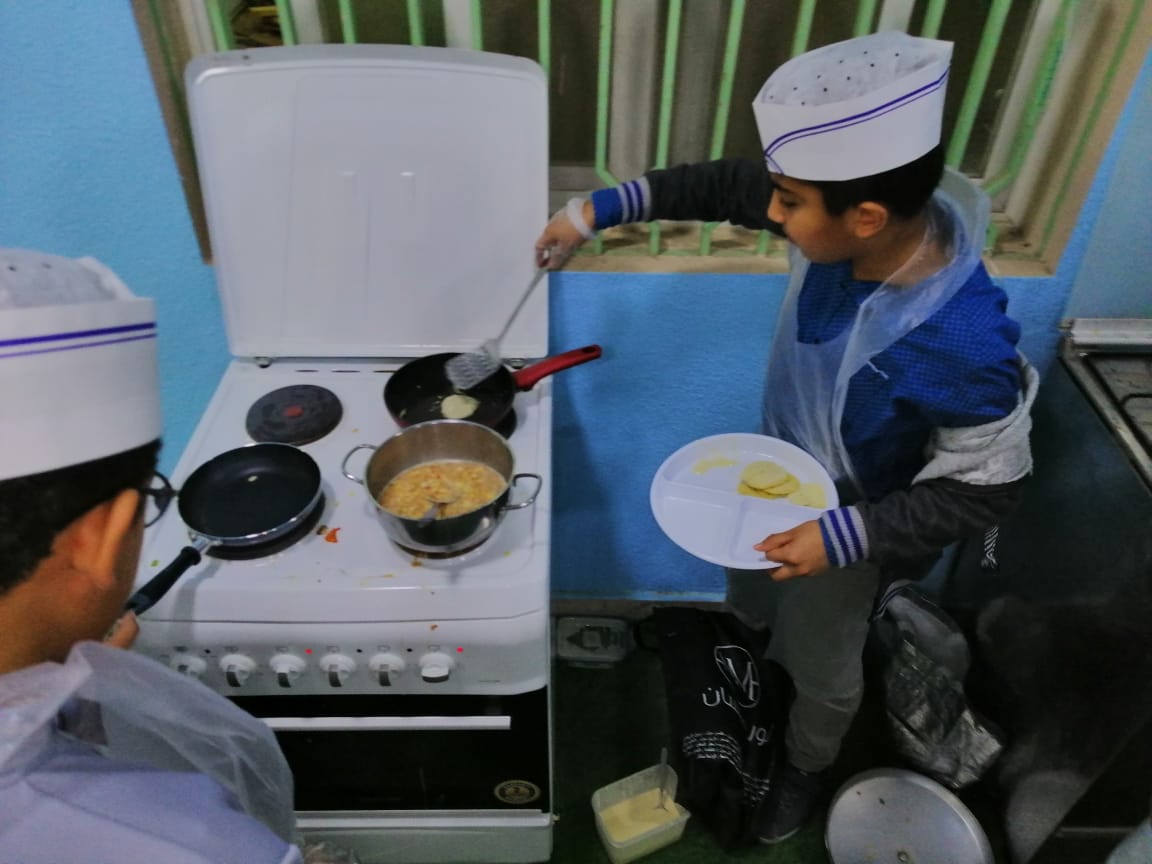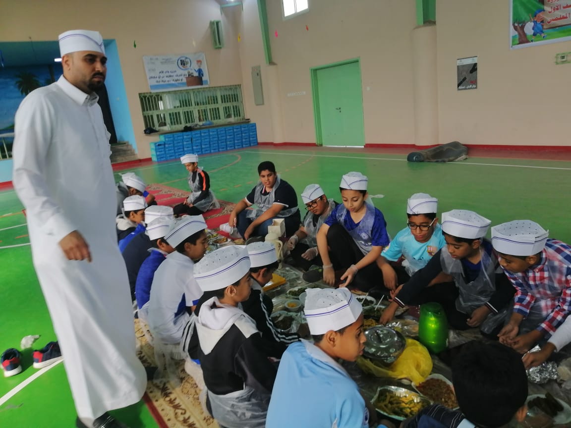 بادر طلاب من الصف السادس بمدرسة محمد بن أبي بكر الابتدائية بالقطيف بإعداد وجبة الإفطار في المدرسة من صنع أيديهم.