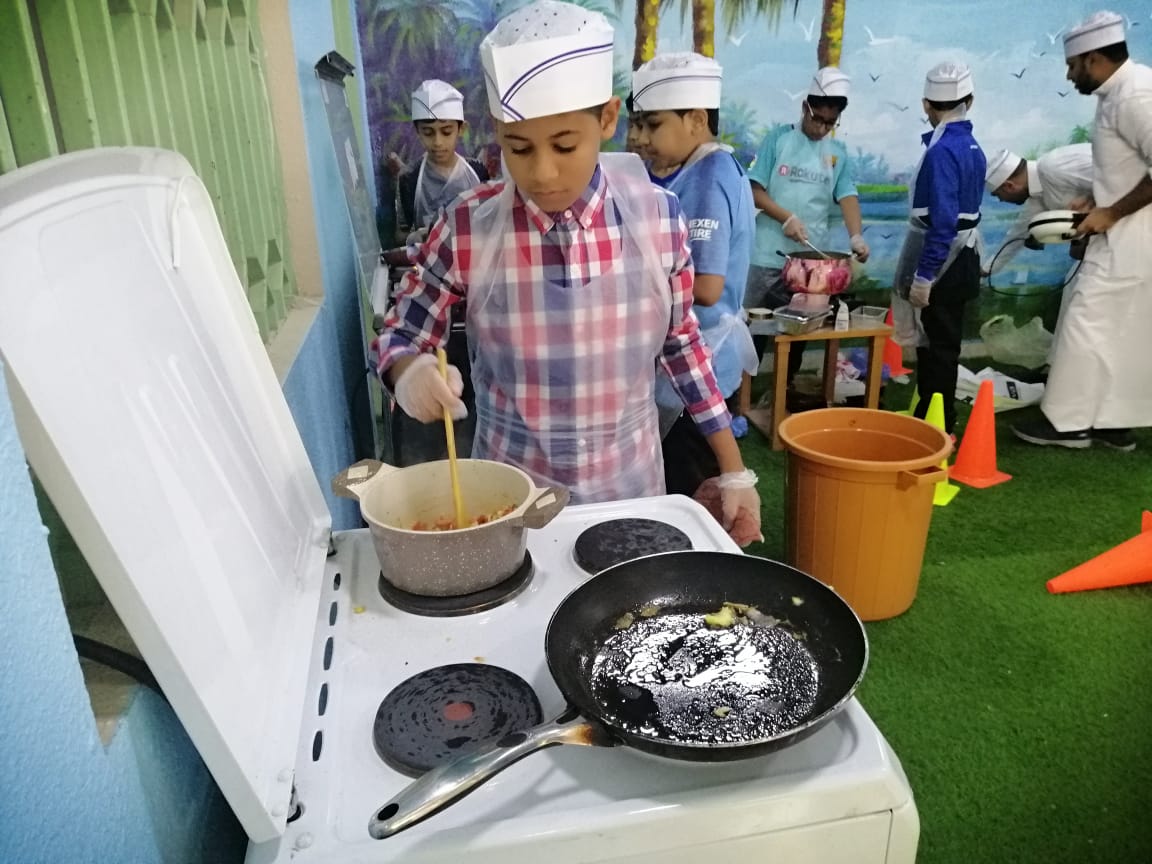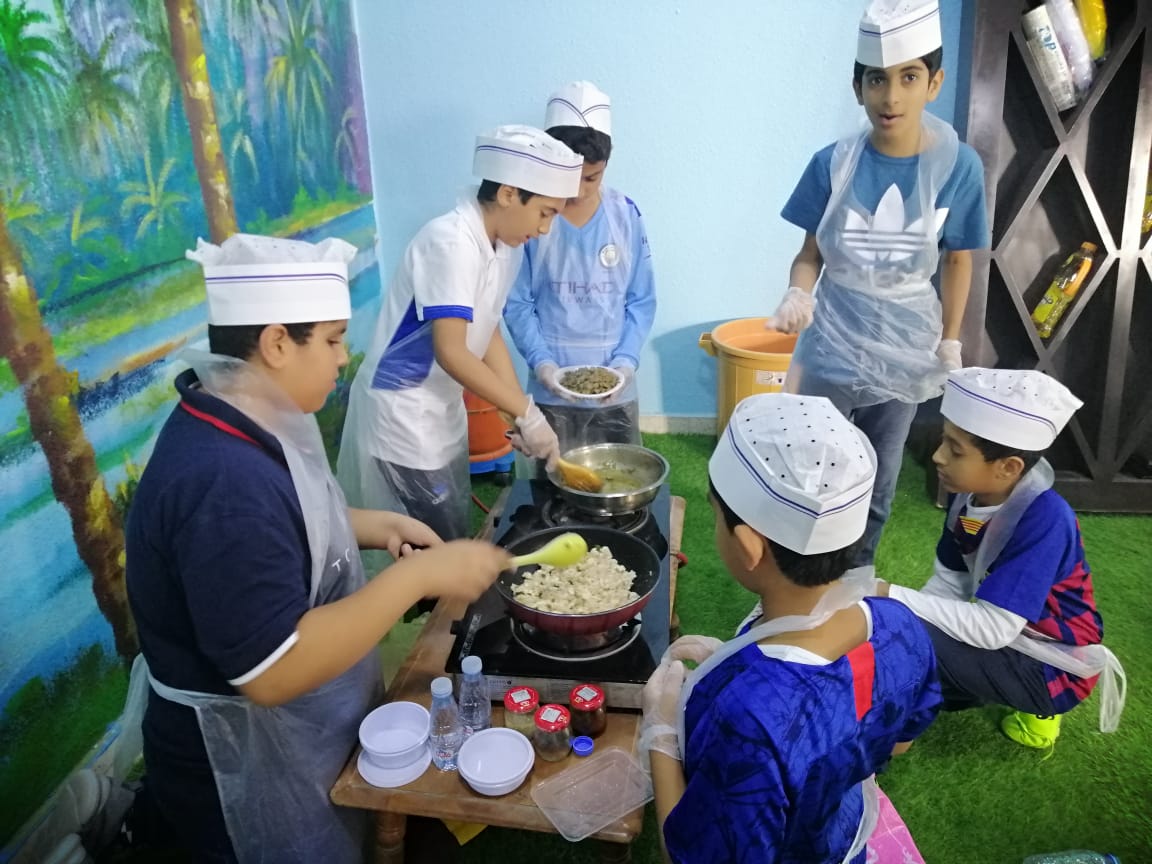 وصنع الطلاب العديد من الإطباق المتنوعة، لتظهر قدرتهم وفنياتهم في الطبخ ومنها القيمات والعصيدة والكبدة، والدجاج وأطباق البيض وغيرها.