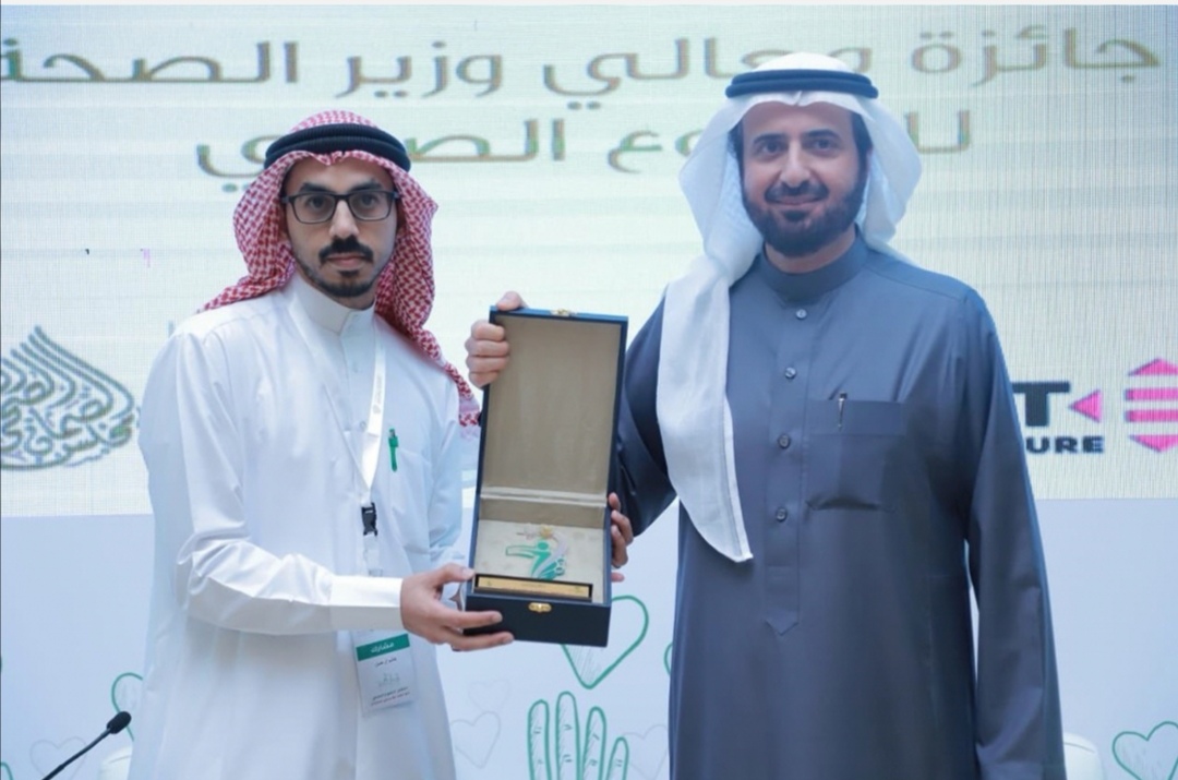 تكريم ”آل حسن“ كان في الملتقى التطوعي الصحي الثاني بالرياض، المختص بتكريم المتطوعين المتميزين على مستوى المناطق.