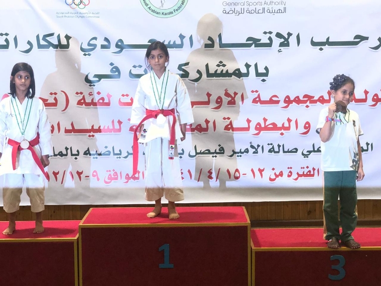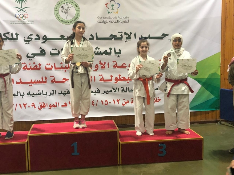 حصدت الطفلة نورين الجشي الميدالية الذهبية في الكاراتيه في بطولة المجموعة الأولى للبنات «الكاتا الفردي» تحت سن 15 سنة والبطولة المفتوحة للسيدات المقامة على صالة الأمير فيصل بن فهد الرياضية بالملز بالرياض.