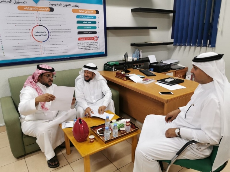 ورافق الشافي مدير إدارة تعليم الكبار عبدالله العمري الذي اجتمع في البداية بنعيم المرهون قائد مركز الحي المتعلم بالقطيف.