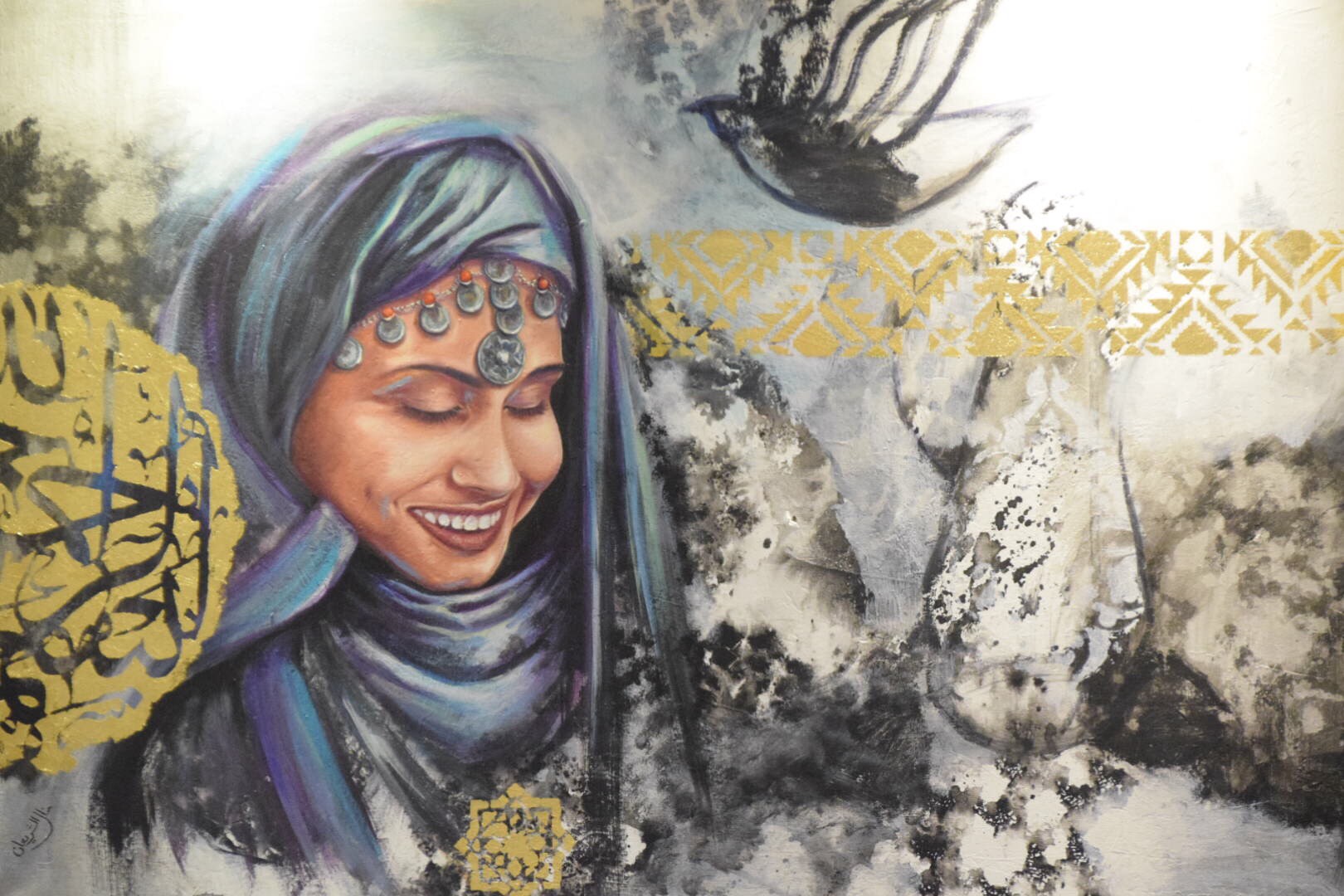 وقالت ”تحديت نفسي في لوحة“ رسلان وتمرة ”من ناحية الإنعكاس في كيفية تلقي المشاهد للون الفضي والذهبي“، وكذلك ”النظرة“ في لوحة ”عبير الذكرى“ وهي لمسن تعاوده الذكرى حين يستنشق الزهر بين يديه.