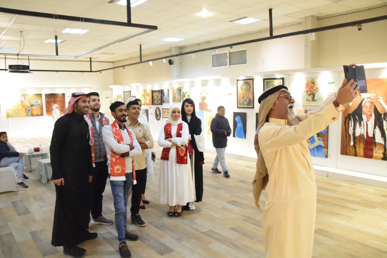 وافتتح المعرض الجماعي لمجموعة شويطر الفنية وبالتعاون مع جمعية الثقافة والفنون، الفنان البحريني عدنان أحمد.