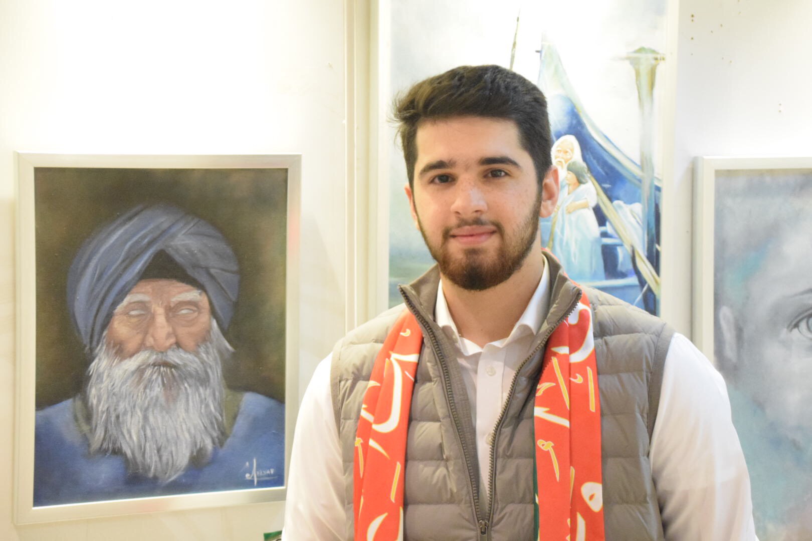 وشارك الفنان البحريني عمر الخاجة بأربع لوحات، وبين أن لوحته ”الغموض“ تعكس حياته الشخصية في الشعور بالوحدة والجانب المستحيل والدراسي، مع إضفاء اللون البرتقالي لوجود التفاؤل".