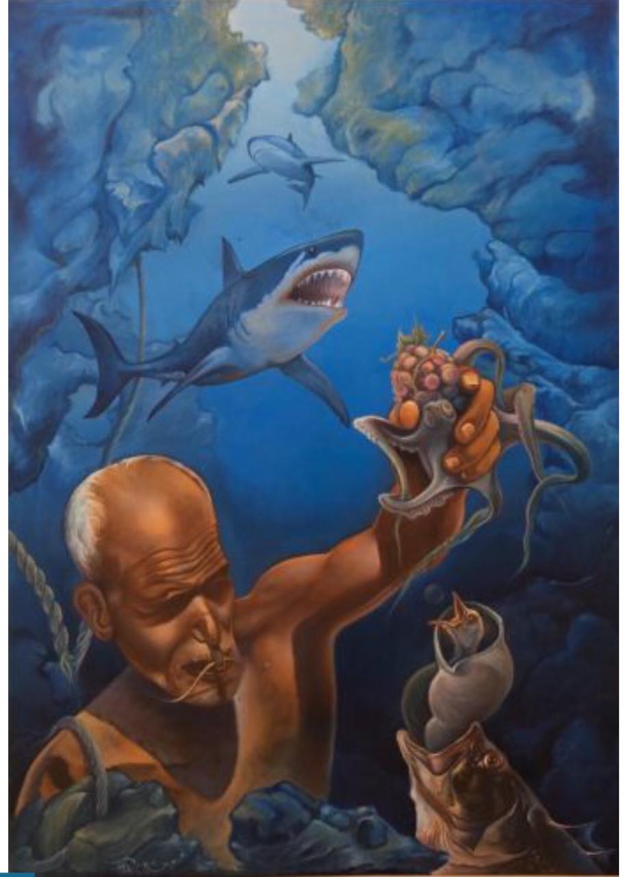 ‏‎وتنوعت المدارس بين سريالية الفنان حسن أبوحسين والفنانة ابتسام فالأول قدم 3 أعمال ومسمياتها مرح الطفولة، ومحنة غواص: بين أسماك القرش، وبين الزرافات، أظهر قدرته الدقيقة في التحكم بالنسب والأبعاد وإن قطعت بعض أطراف العناصر وكثرت إلا أن المواضيع لازمته بذاكرة خيالية خصبة أتمنى أن يختصر بعضها لتمكين المتلقي من عدم التشتيت والإستمتاع بما يجيده أبوحسين من تسجيل متأن للأشخاص والحيوانات وللّون المنسجم مع مخيلته التي ستدر عليه أعمال كثيرة بعد اختزالها.
