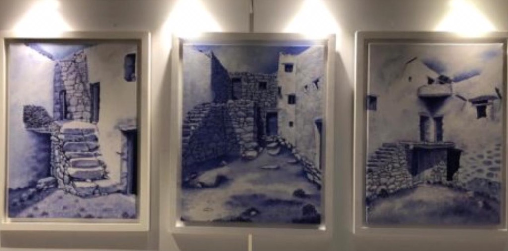 ‏‎الفنان حسن مداوي: بلون واحد ودرجاته المتعددة أعطى قيمة خطية متينة في ثلاث لوحات بتفاصيل الحجر في المنازل الشعبية بإسقاط الضوء على الجدران مع التمكن من الدقة والتفاصيل، كما أن المساحة المتروكة سمحت للمتلقي التأمل في انتقاء هذا المشهد.
