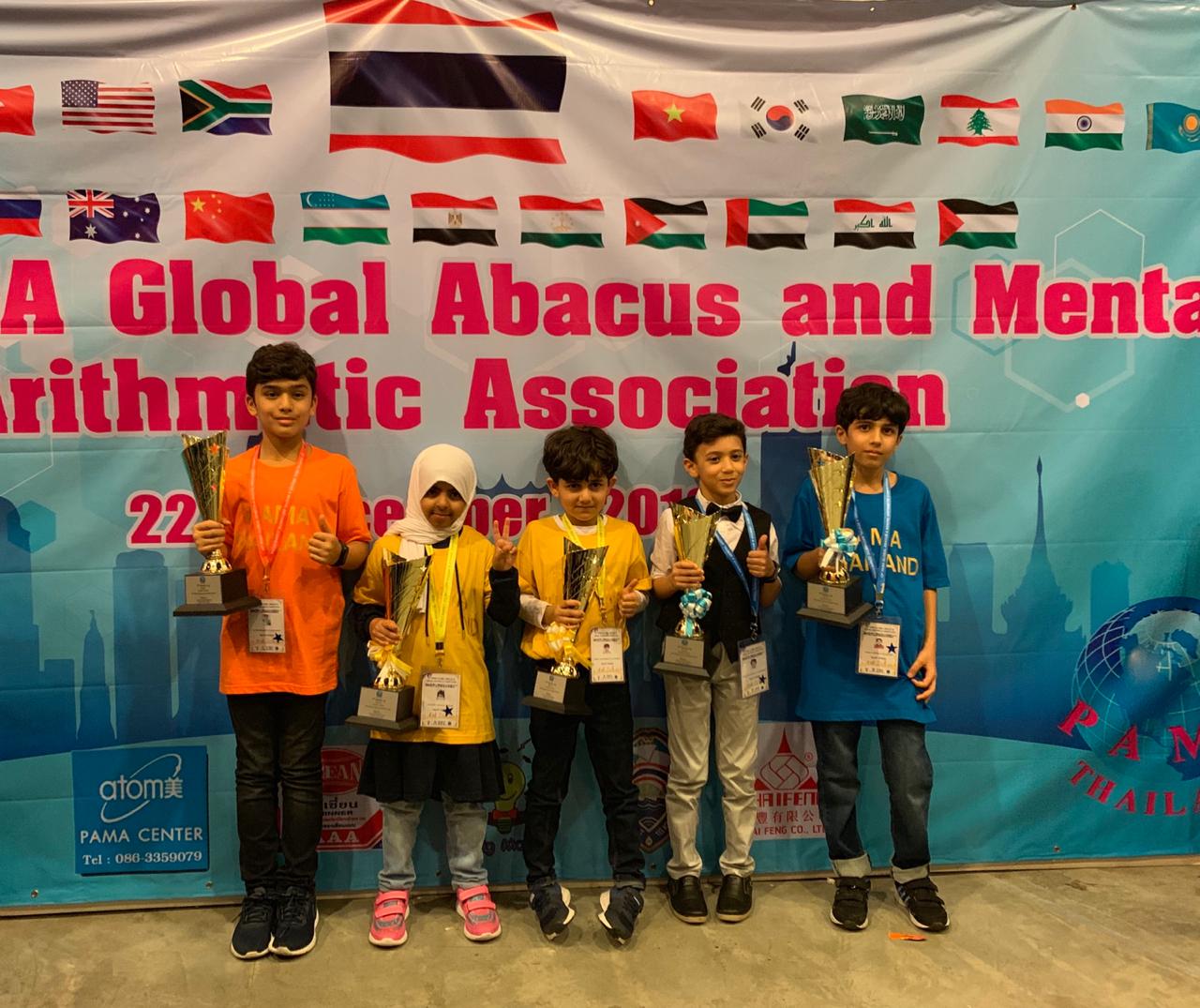 حقق خمسة طلبة من المدارس الابتدائية بقطاع القطيف خمسة مراكز عالمية في نهائيات مسابقة الحساب الذهني التاسعة عشرة، التي نظمتها جمعية باما العالمية للعداد والحساب الذهني بمملكة تايلاند، يوم الأحد، بعد خوضهم المنافسات العالمية مع نظرائهم من مختلف المدارس الابتدائية بدول العالم.