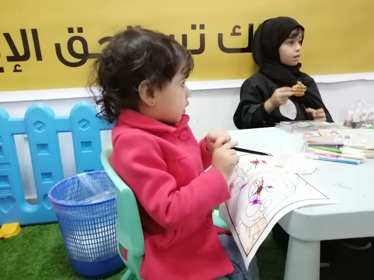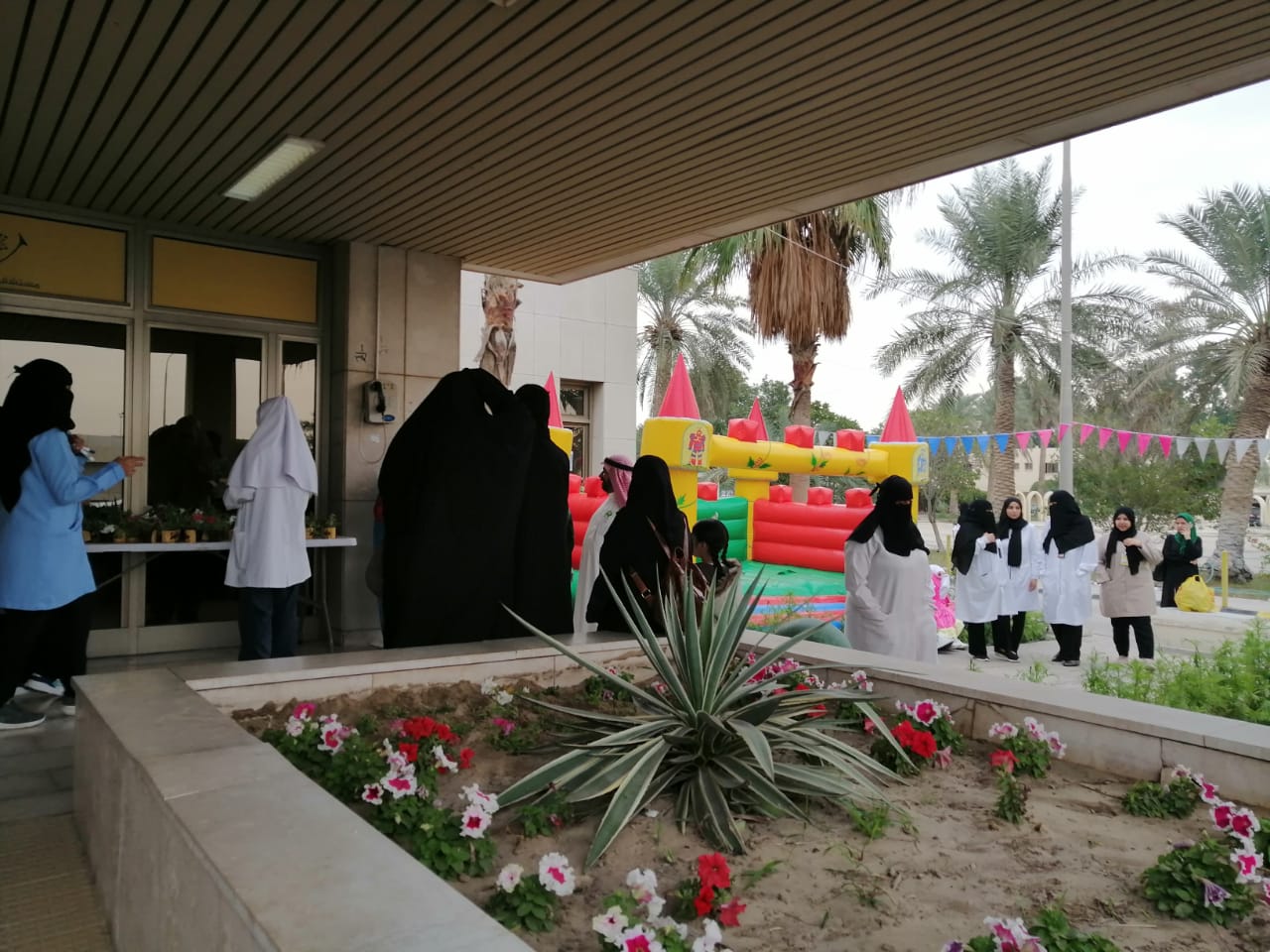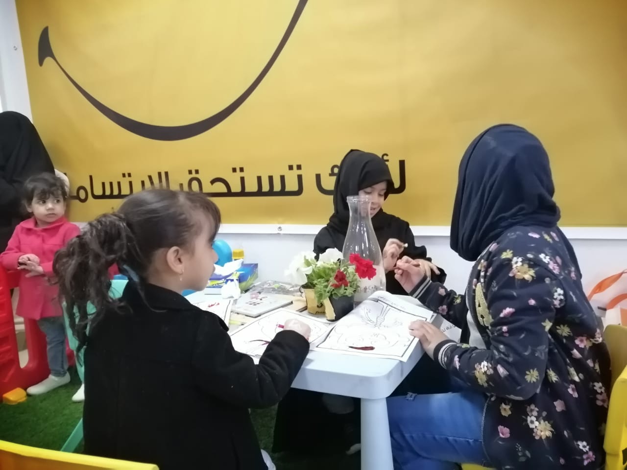 وتعددت الأركان منها الألعاب الهوائية وركن الضيافة ورسوم الأطفال وركن استقطاب المتطوعين ”أنا في الخدمة“ والذي سجل فيه 140 متطوعًا للخدمات مثل تقديم التوجيه للمرضى والمراجعين.