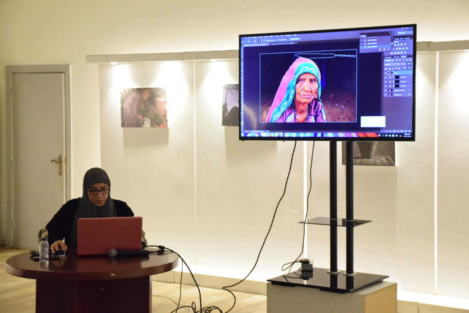 أحتضنت قاعة عبدالله الشيخ «بالدمام» مساء الأثنين الفنانة نجاة علي الفاضل في ورشة التصوير“حكاية احادية”للأعمال الأحادية أساليب إلى أحادي الفوتوشب.