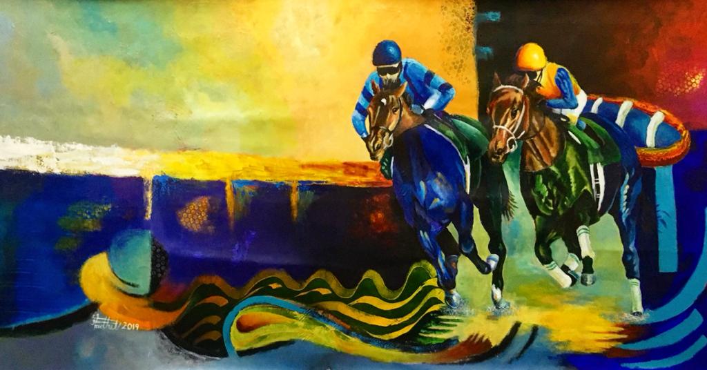وأوضح أن موضوعاته توزعت بين محوري ”الجوكي والخيل ومايشعران به من قلق“.
