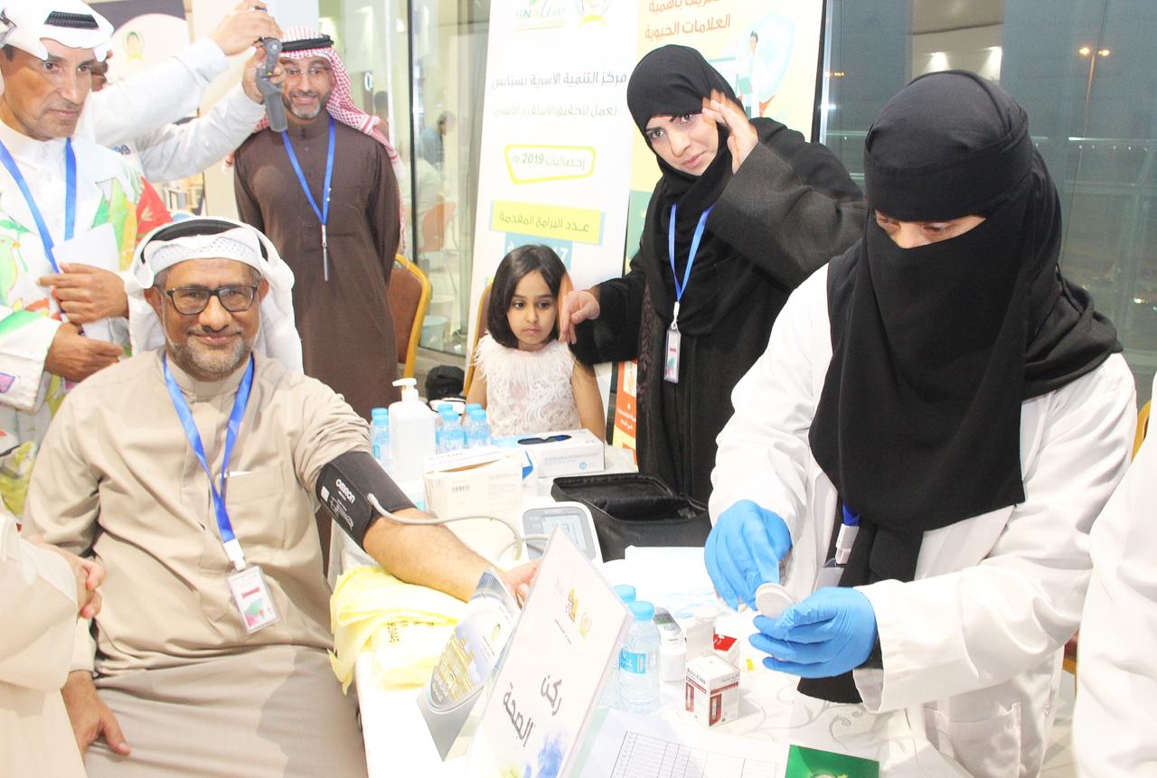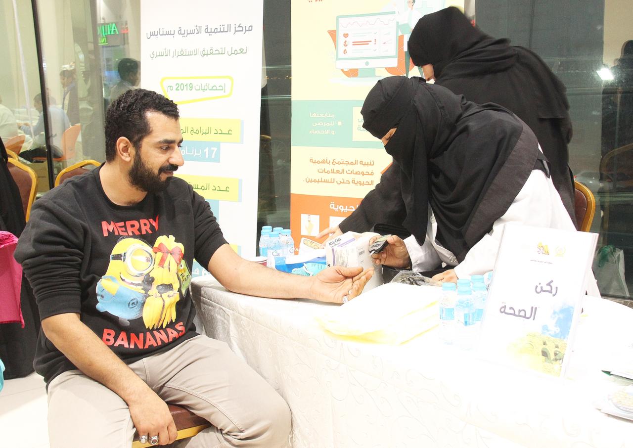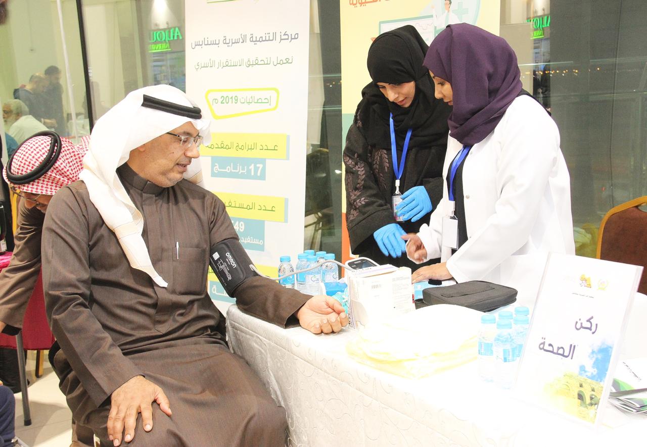 وذكرت احد المشاركات ان الأركان المتواجدة تقوم بزيارات منزلية للمشتركين والمستفيدين وتلبية احتياجاتهم الصحية او المستلزمات المنزلية وعمل فحوصات لمرضى الضغط والسكر كقياس العلامات الحيوية مثل ضغط الدم ونبض القلب وغيرها.